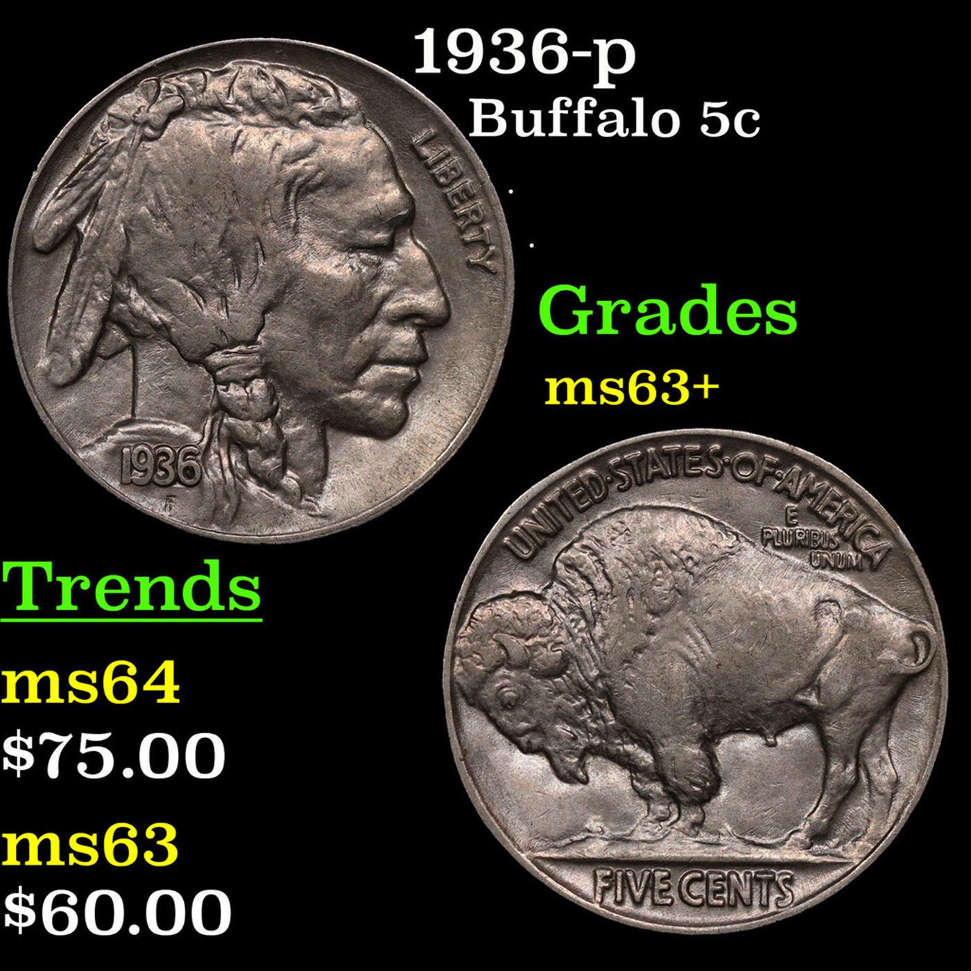 1936-p Buffalo Nickel 5c Grades Select+ Unc.