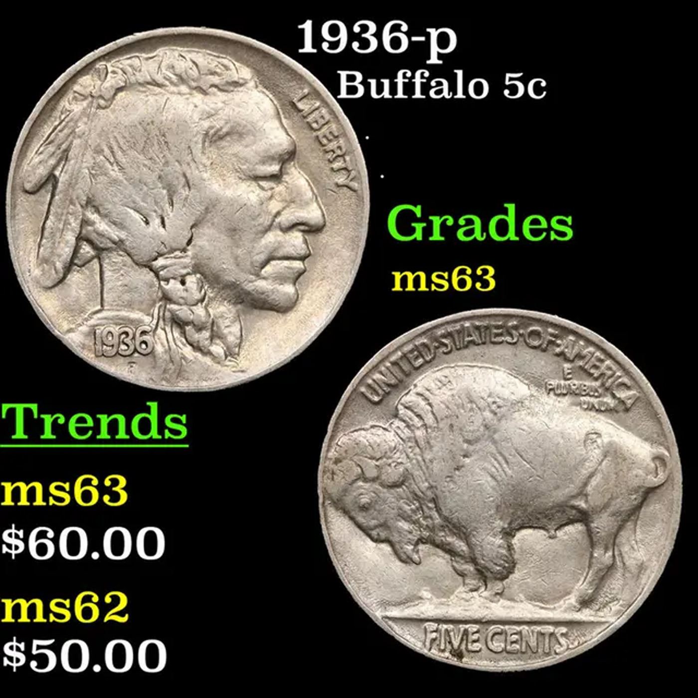 1936-p Buffalo Nickel 5c Grades Select Unc.