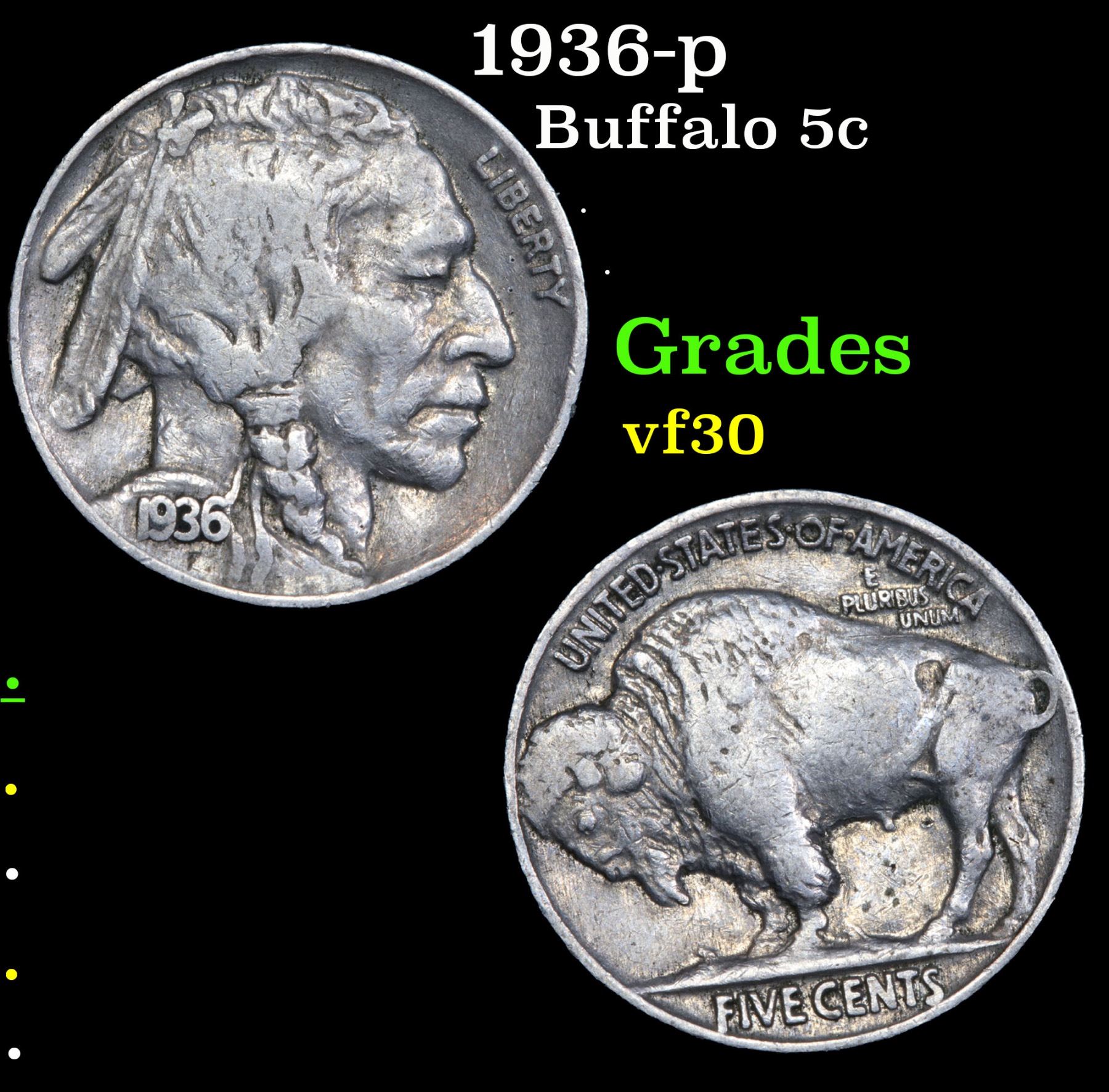 1936-p . . Buffalo Nickel 5c Grades vf++.