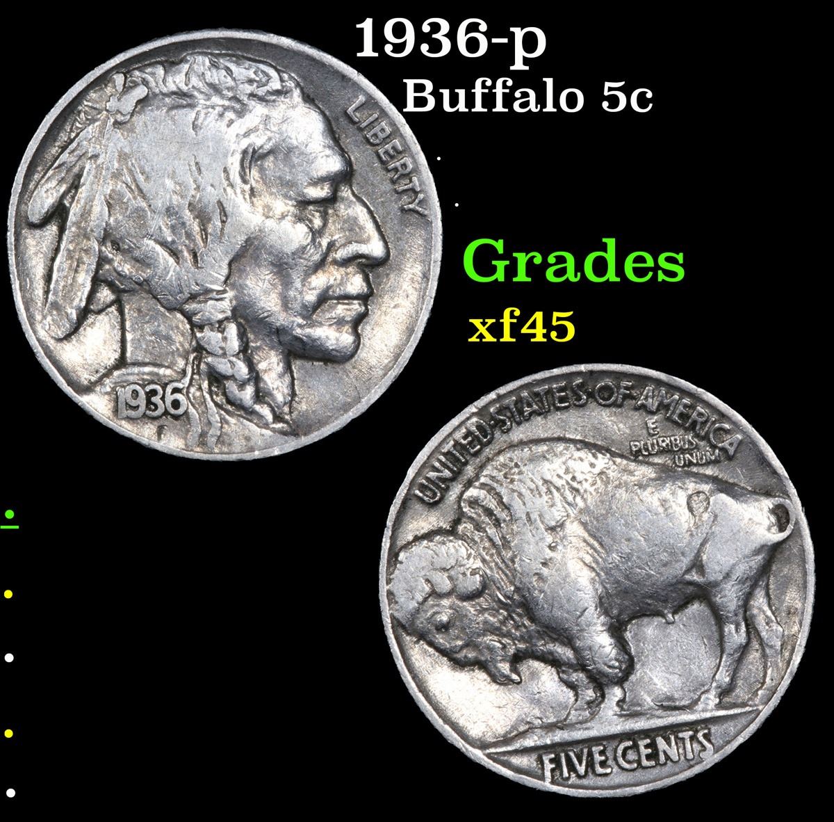 1936-p . . Buffalo Nickel 5c Grades xf+.
