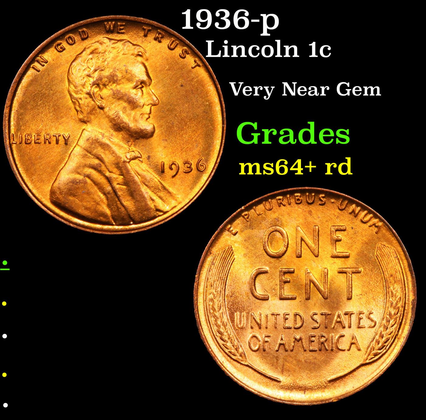 1936-p Lincoln Cent 1c Grades Choice+ Unc RD.