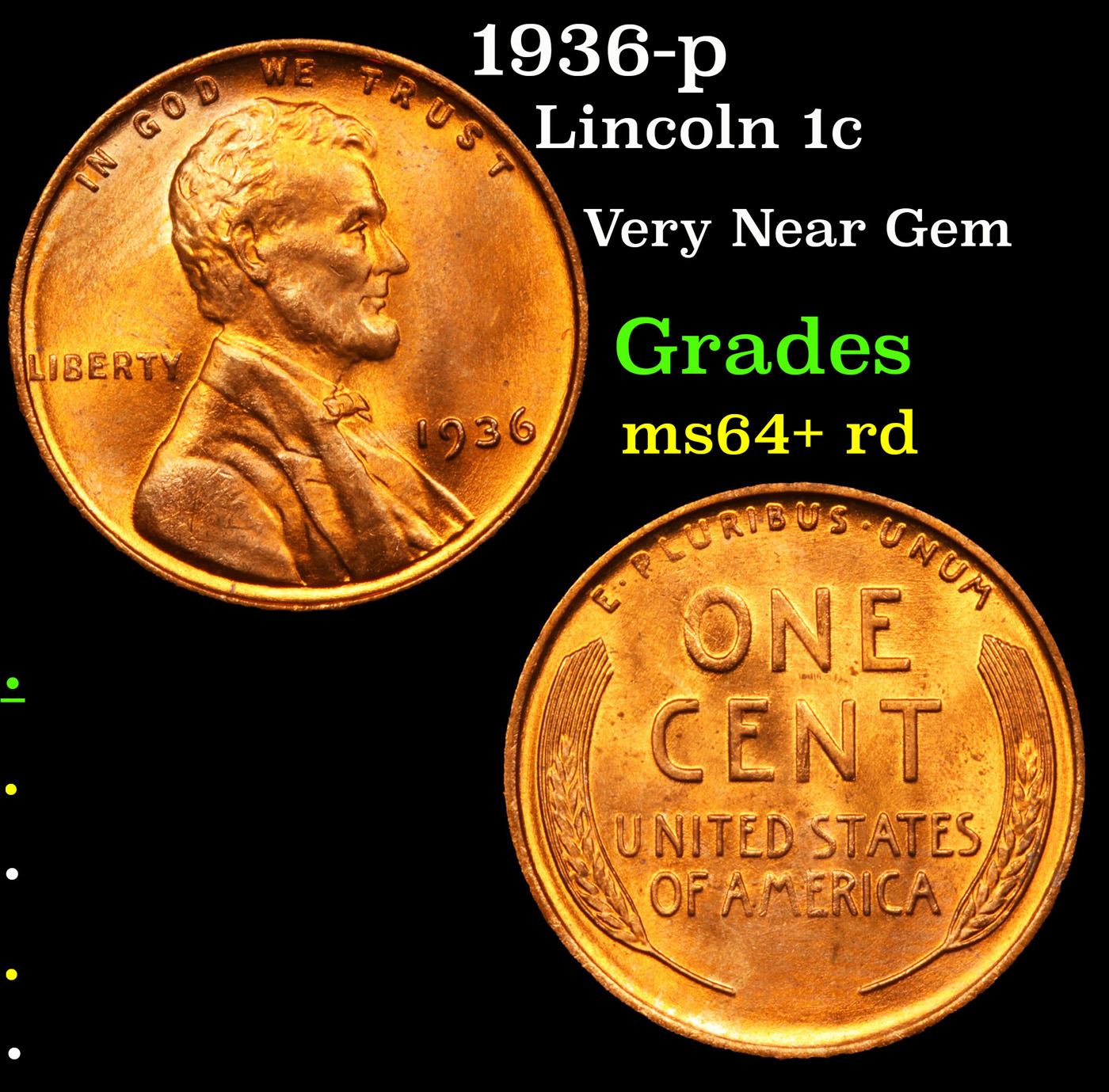 1936-p Lincoln Cent 1c Grades Choice+ Unc RD.