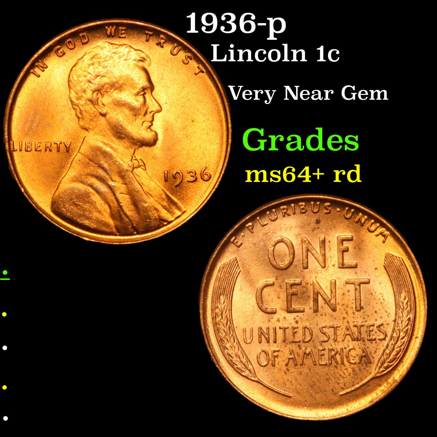 1936-p Lincoln Cent 1c Grades Choice+ Unc RD.