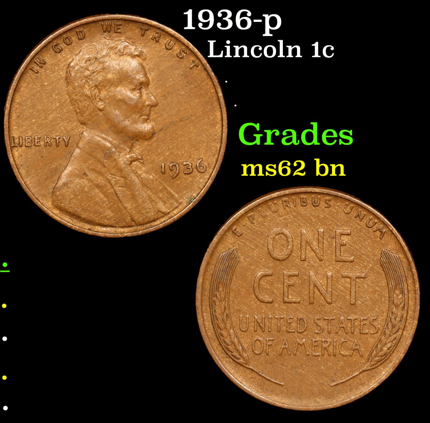 1936-p Lincoln Cent 1c Grades Select Unc BN.
