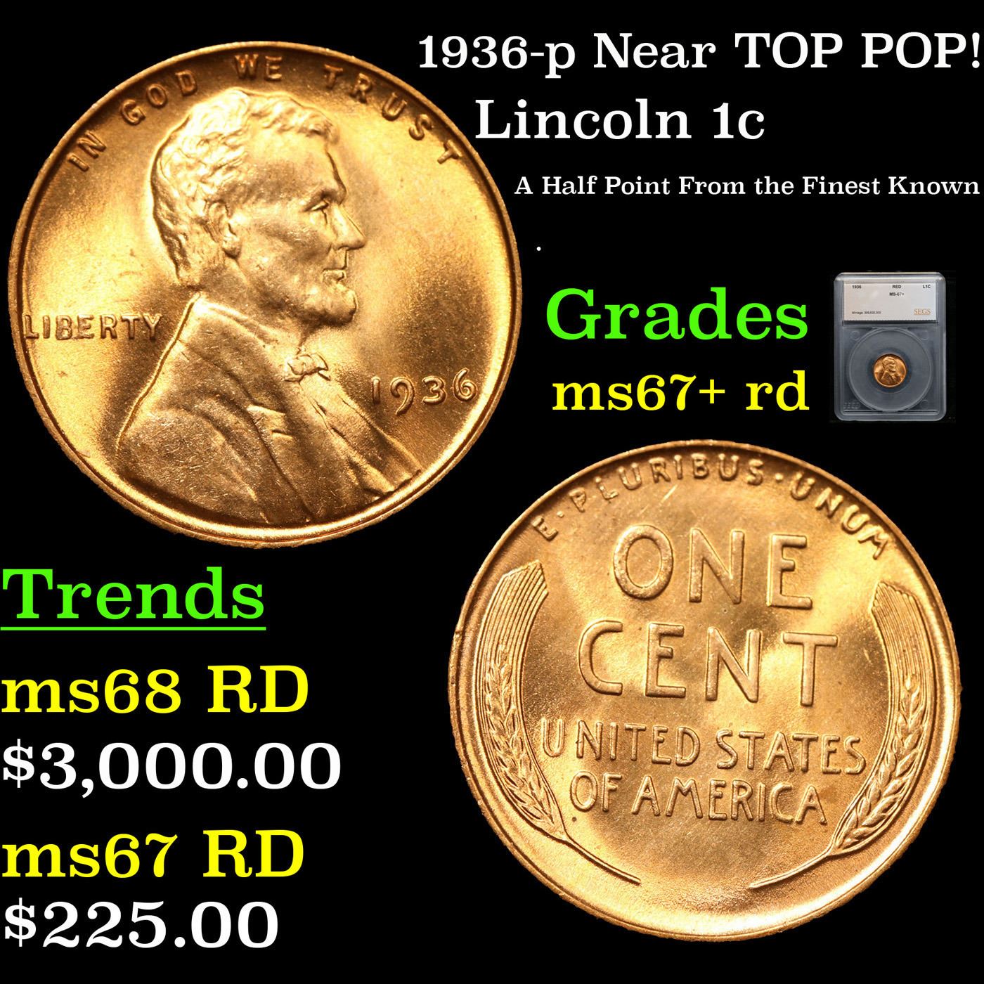 1936-p Near TOP POP! Lincoln Cent 1c Grades GEM++ RD by SEGS.