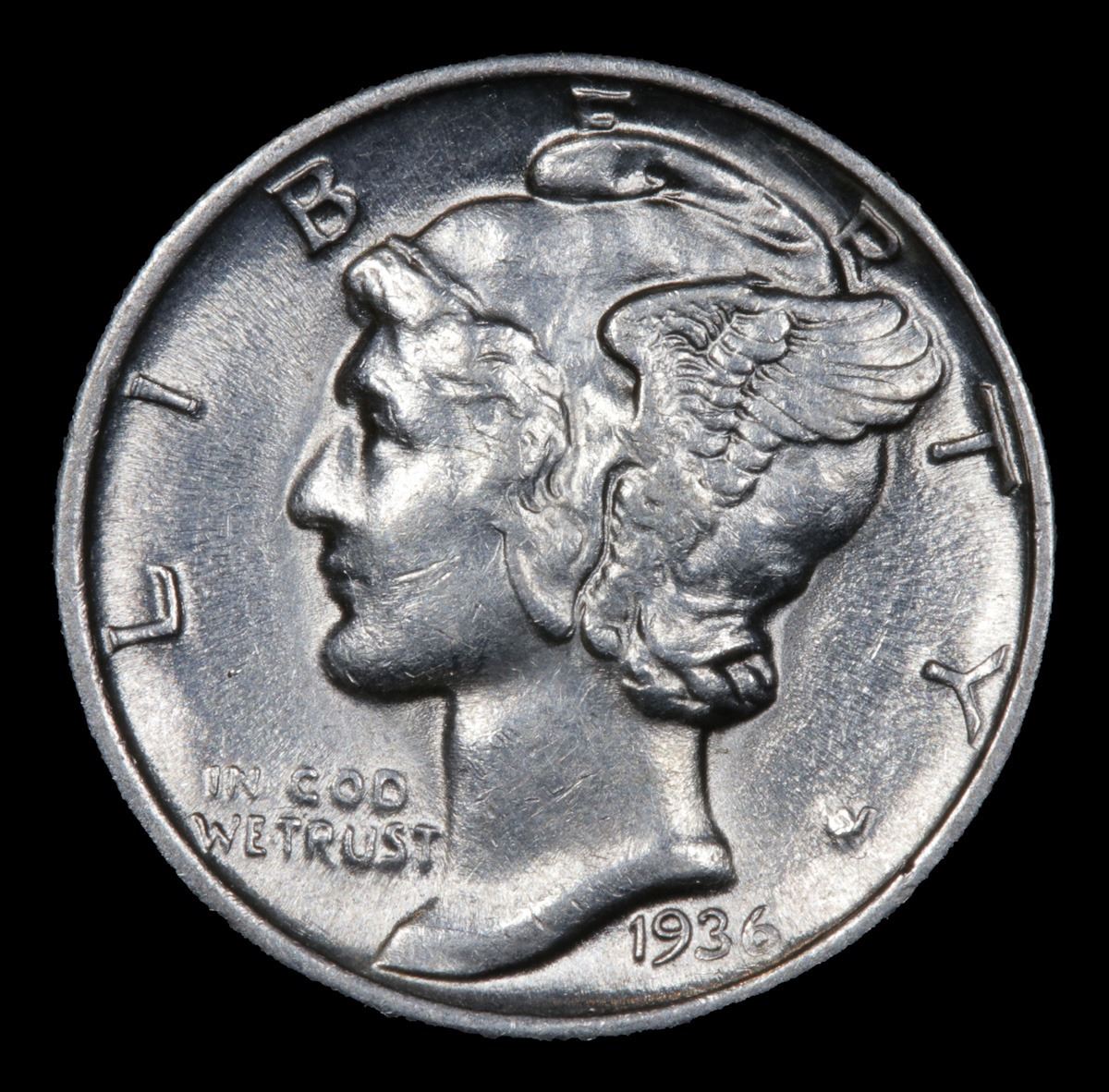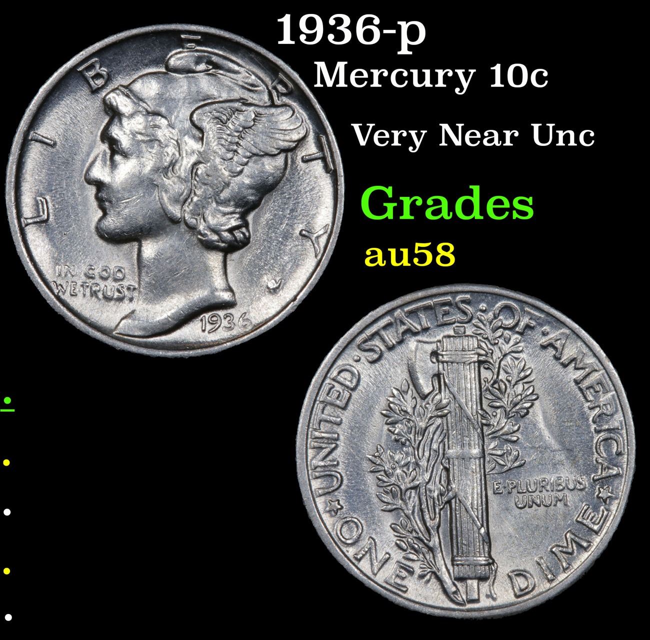 1936-p . Very Near Unc Mercury Dime 10c Grades Choice AU/BU Slider.