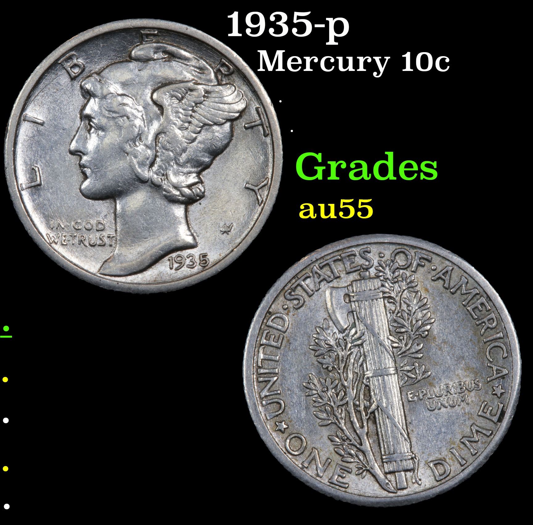 1936-p Mercury Dime 10c Grades Choice AU.