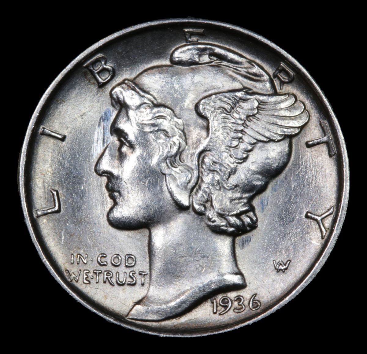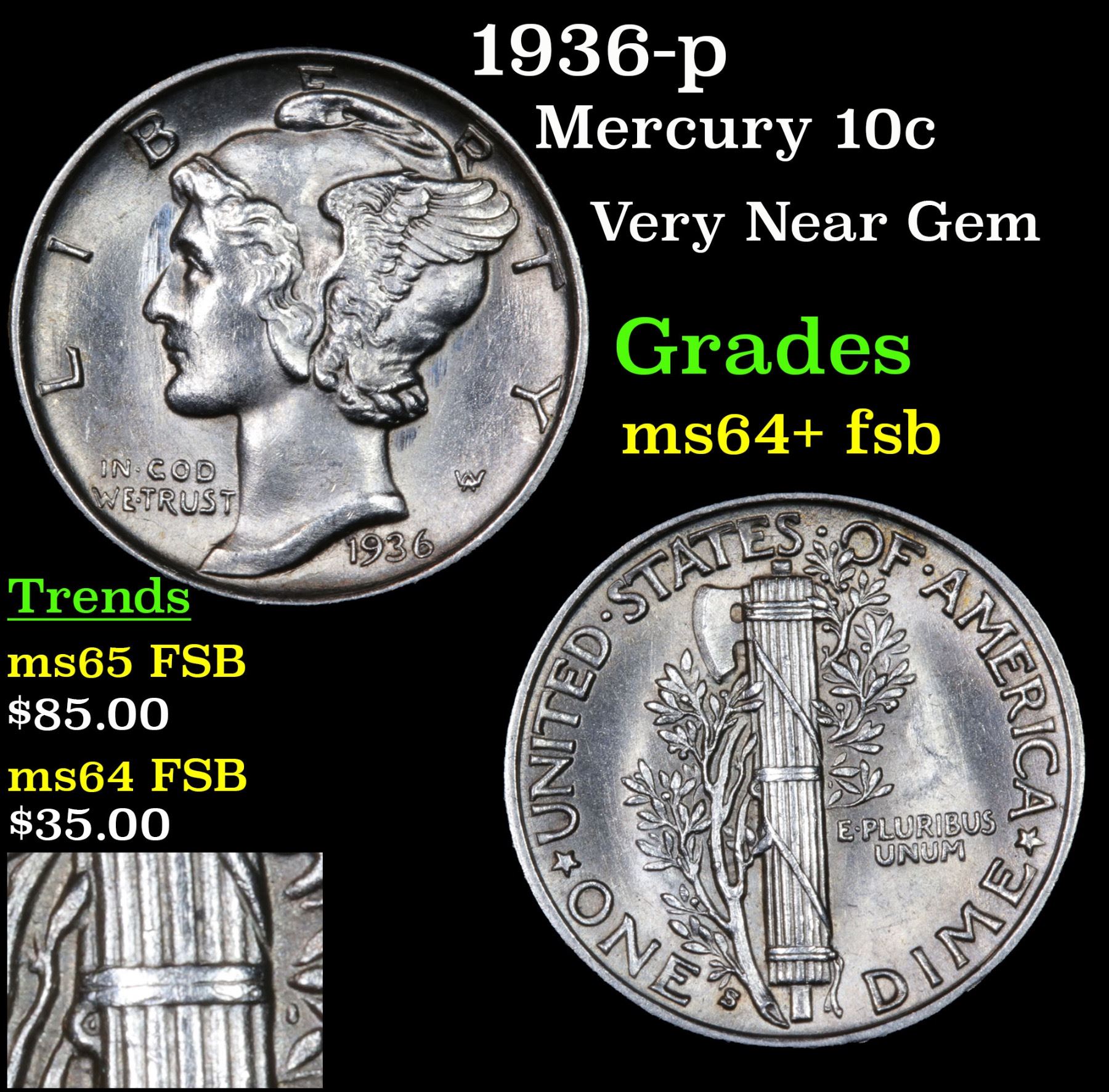1936-p . Very Near Gem Mercury Dime 10c Grades Choice Unc+ FSB.