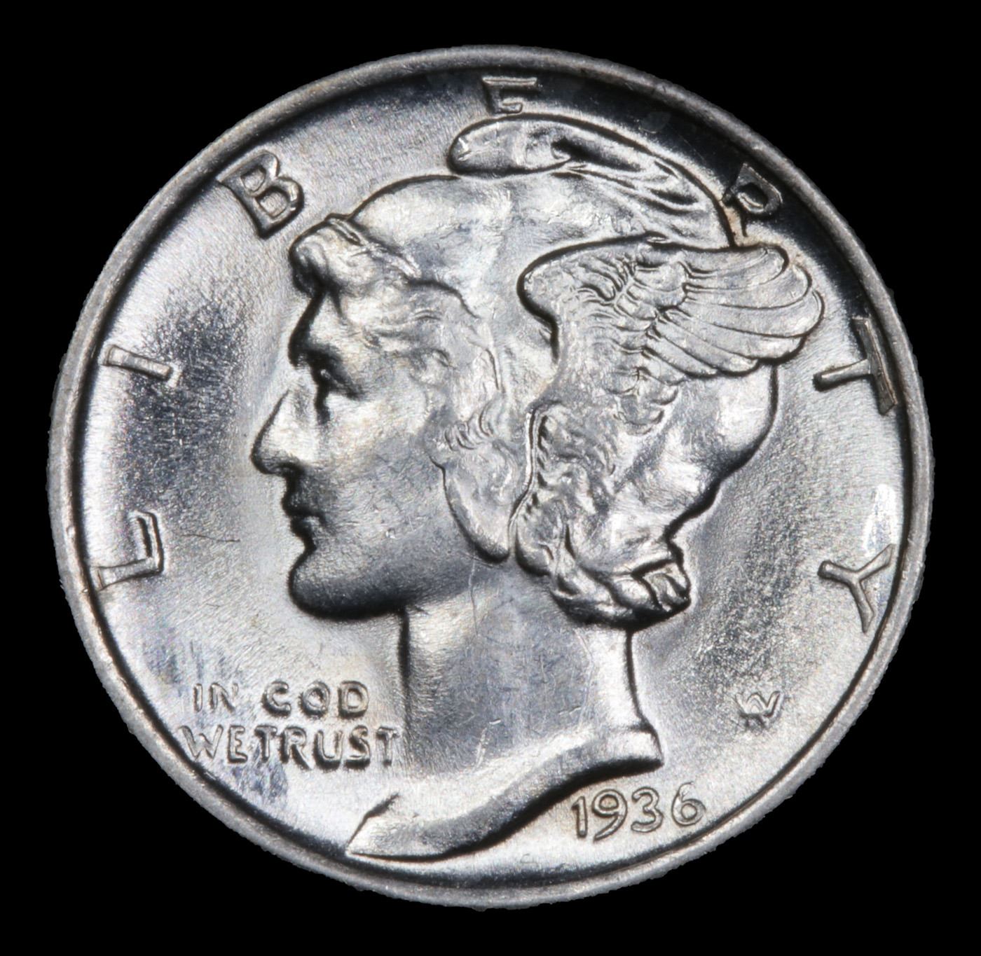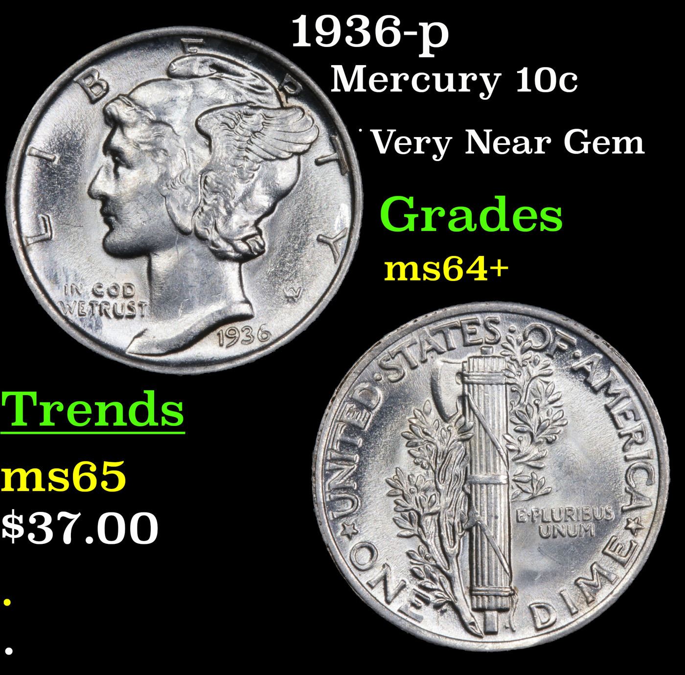 1936-p Mercury Dime 10c Grades Choice+ Unc.
