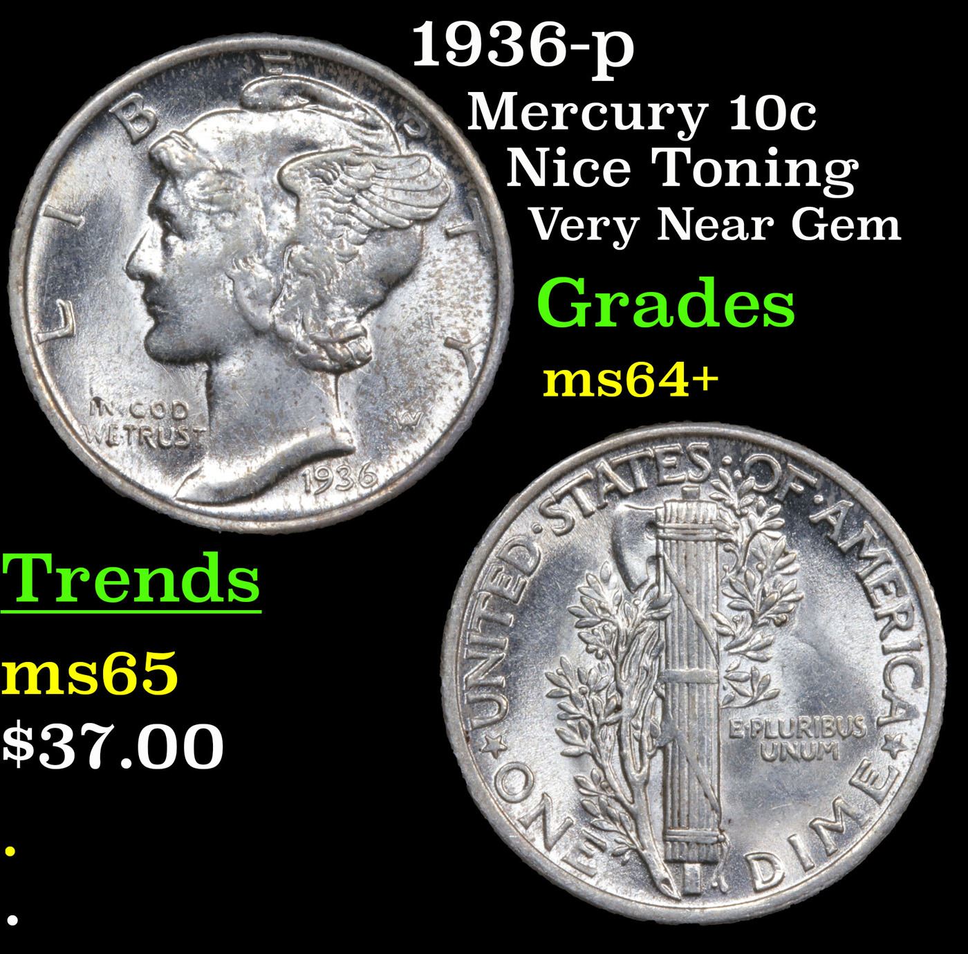 1936-p Mercury Dime 10c Grades Choice+ Unc.
