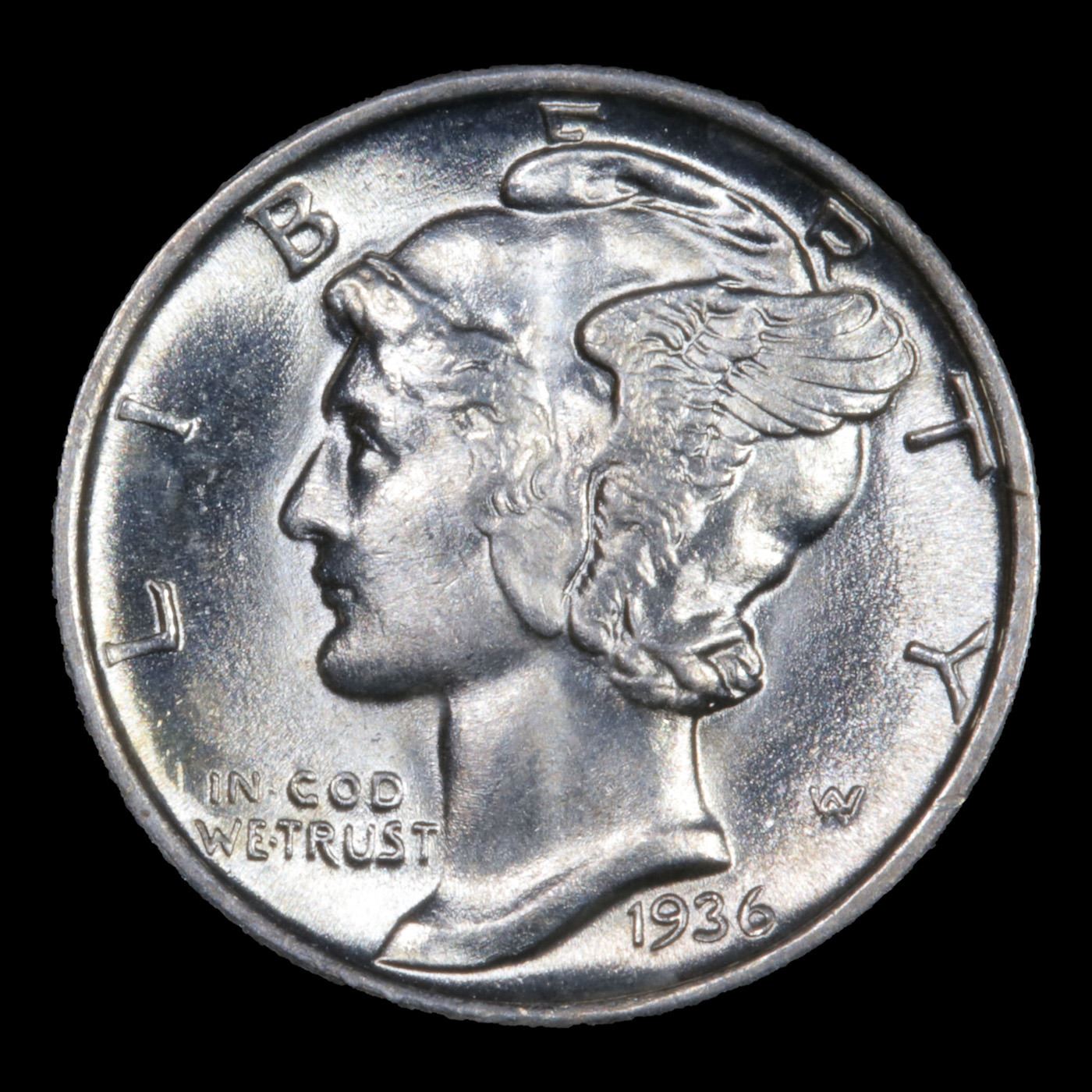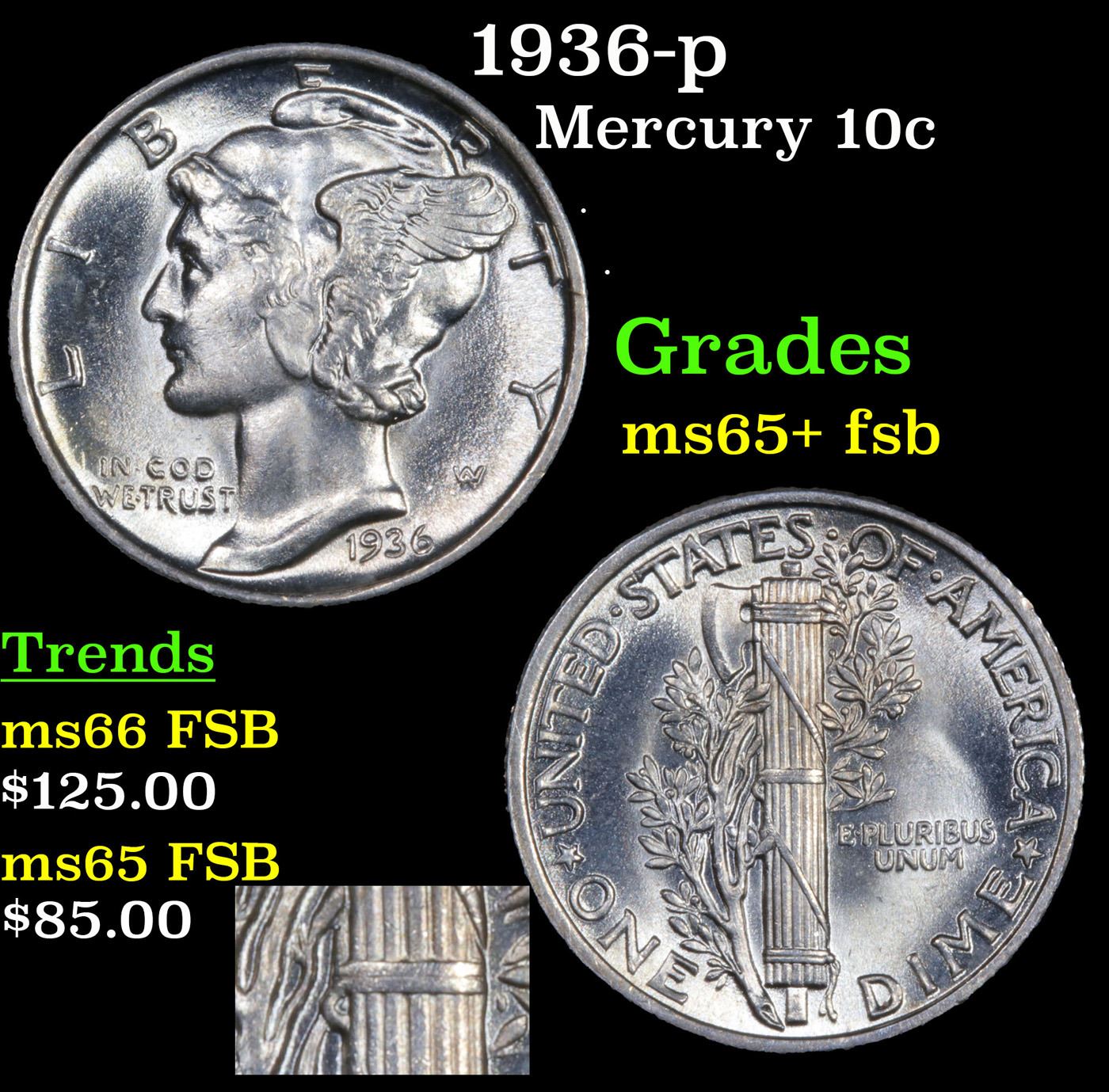 1936-p Mercury Dime 10c Grades GEM+ FSB.