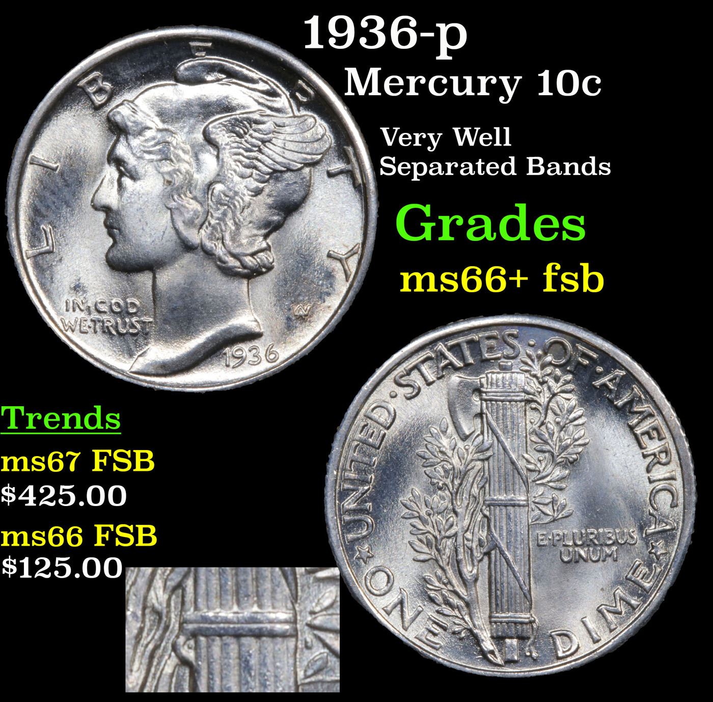 1936-p Mercury Dime 10c Grades GEM++ FSB.