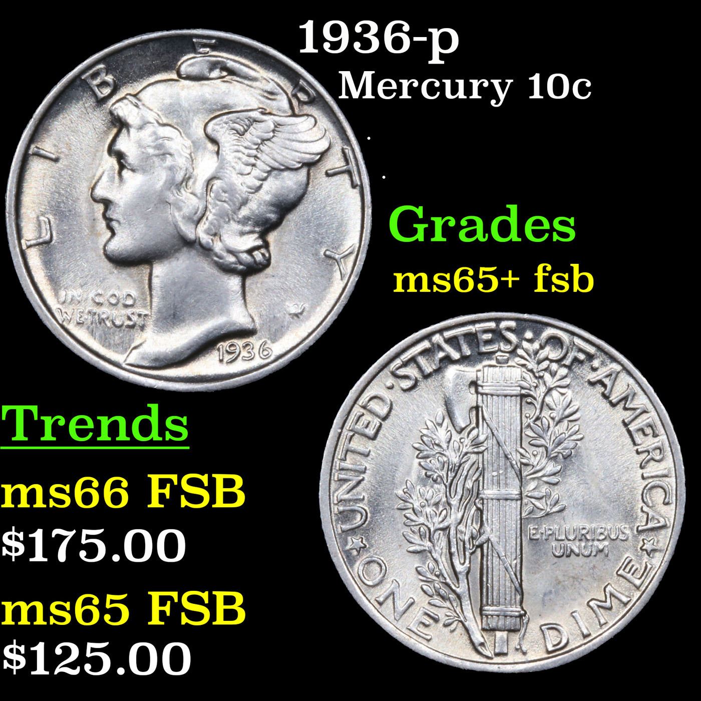 1936-p Mercury Dime 10c Grades GEM+ FSB.