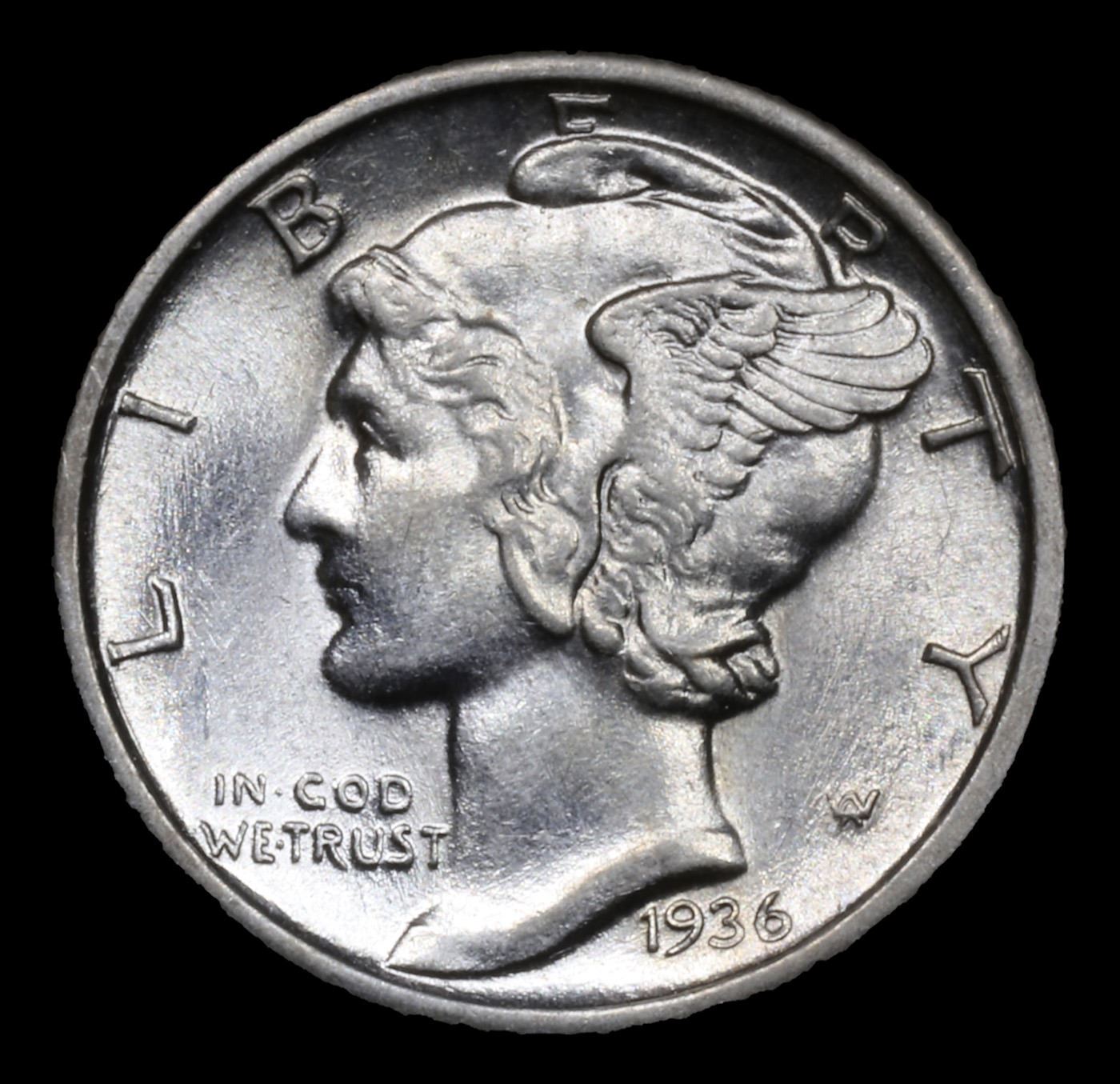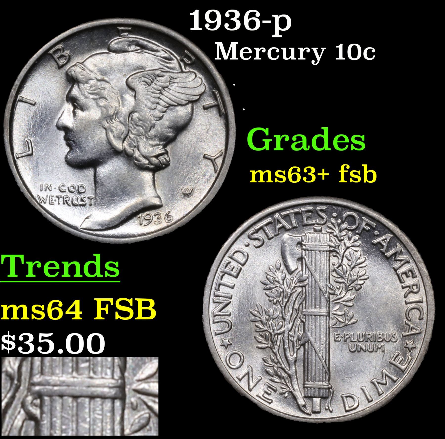 1936-p Mercury Dime 10c Grades Select Unc+ FSB.