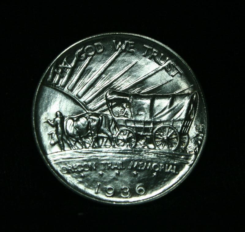 OUTSTANDING EXAMPLE, could be an ms67. Stunning blast white example. A Great and Lustrous Gem. A fantastic striking of a Great and Beautiful coin. Virtually mark free, an Outstanding example. One of the most beautifully designed coins in American History, Designed by the same engraver that designed the Buffalo Nickel, This coin Commemorates the Oregon Trail that brought thousands of Intrepid pioneers to the West in the 1830's and 40's. When Buying an Oregon Trail Commemorative, regardless of year and mint the Points to first show wear are the Indian’s hand and thigh on the obverse and the ox and the bows of the wagon’s cover on the reverse, these are the high points. Coin World's Coin Values lists ms66 at $500 and The Wholesale Greysheet lists ms66 at $375. Estimated Value $450.
