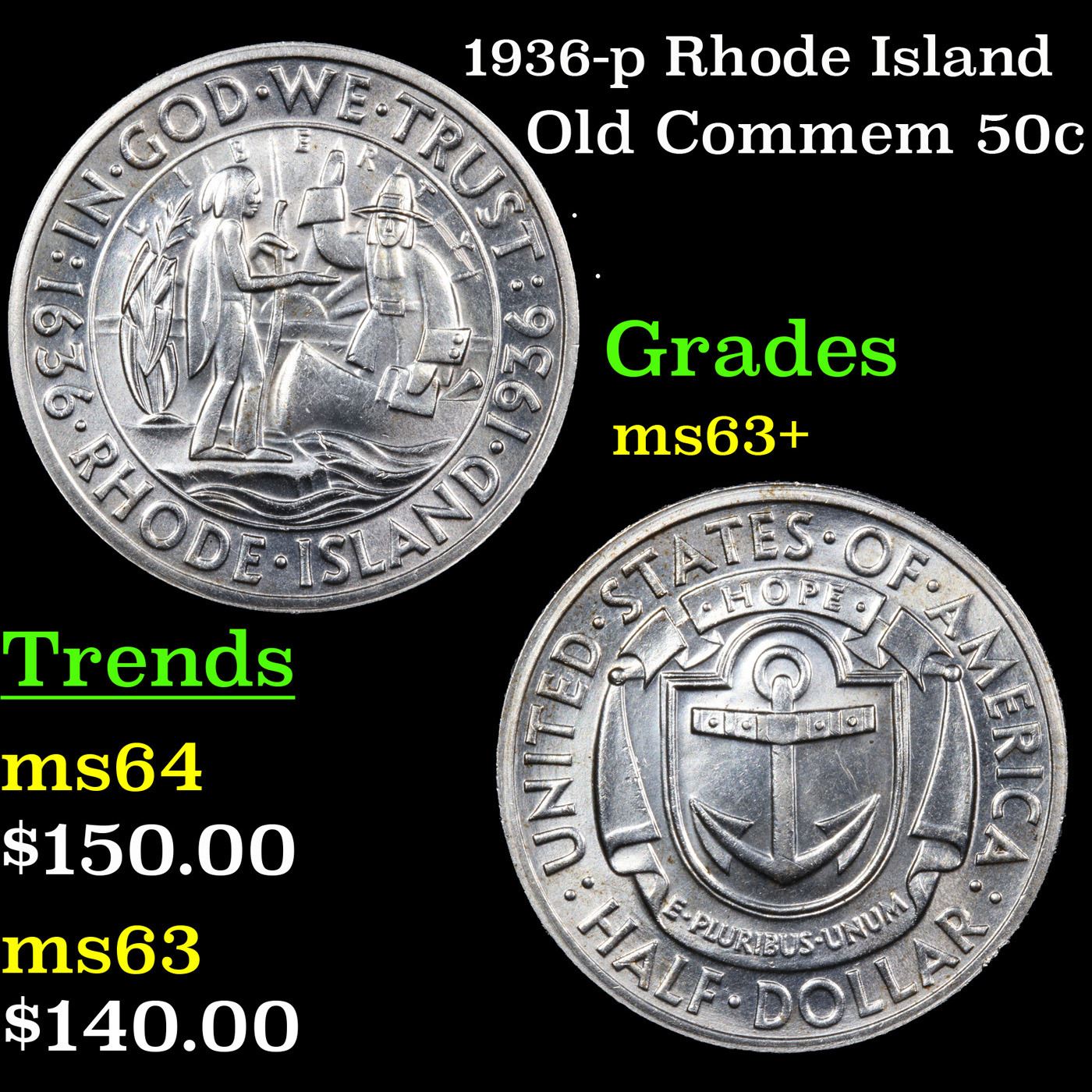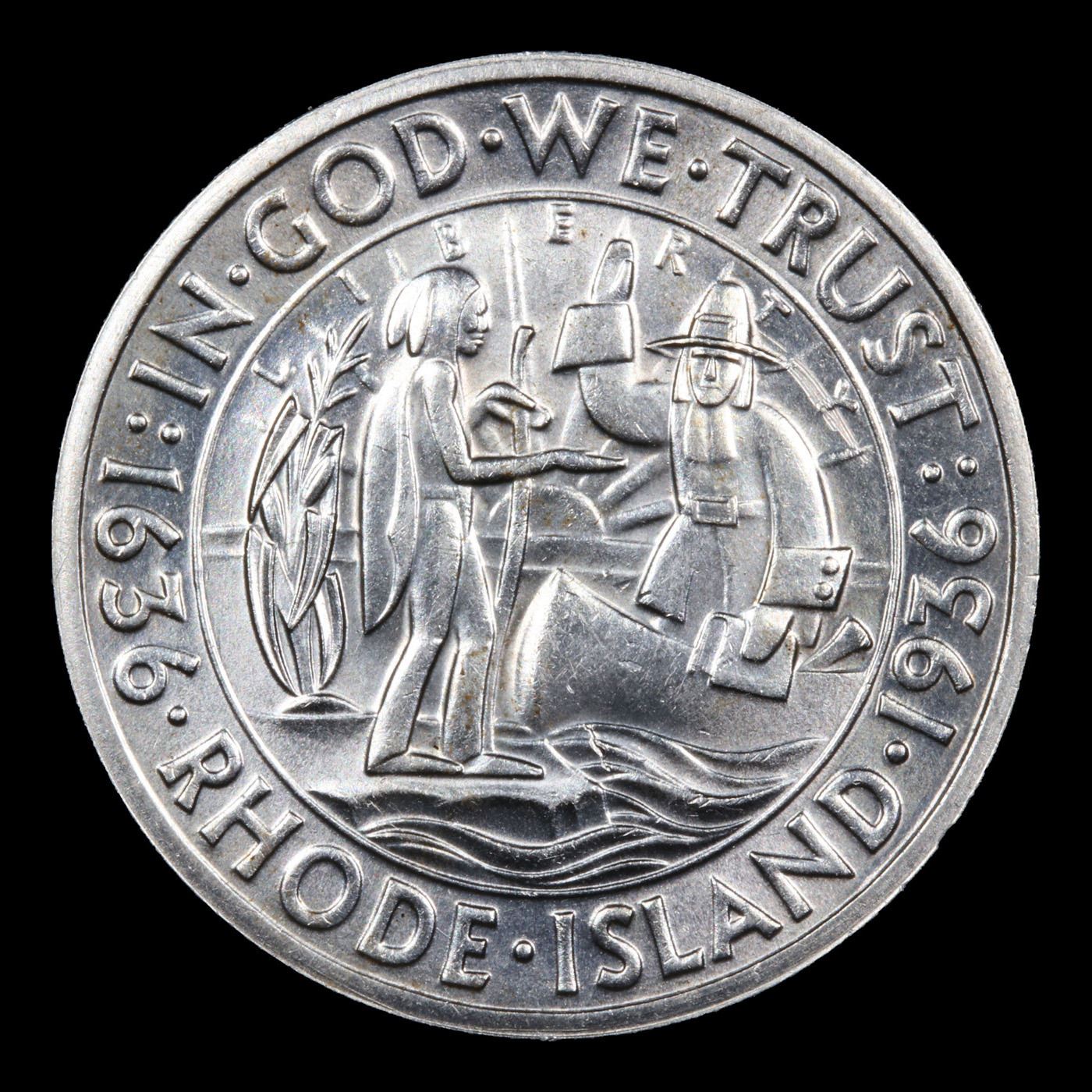 1936-p Rhode Island Old Commem Half Dollar 50c Grades Select+ Unc. The Long Island Commemorative Celebrates the 300th Anniversary of the Settling of Long Island by the Dutch. When examining a Long Island Commemorative the points to Check for wear include the Settler’s Cheekbone and the Ship’s Mainsail (the One at Center). The commemorative coin most commonly referred to as the 1936 Rhode Island Tercentenary Half Dollar (Buy on eBay) was actually issued to mark the 300th anniversary of the founding of Providence by Roger Williams. The maximum authorized mintage was 50,000 pieces, of which the entire amount was produced across three mint facilities and distributed to the public.Designs for the coins were created by John Howard Benson and Arthur Graham Carey. Their original models did include reference to the Providence with inscriptions around the outer edge of the coin on the obverse “In a scene of God’s Merciful providence until me, called the place Providence” and on the reverse “State of Rhode Island and Providence Plantation Tercentenary”. These lengthy inscriptions were not used in the final version of the design.The obverse features a scene of John Williams in a canoe, holding a bible, and greeting a Native American who stands on the shore extending a hand. The “sun of religious liberty” appears in the background. The reverse design features an anchor and shield motif, adopted from the Rhode Island state seal. These designs were struck in low relief, but with sharply designed elements that resemble a woodcut.Including pieces struck for assay, the Philadelphia Mint produced 20,013, the Denver Mint 15,010, and the San Francisco Mint 15,011. The Rhode Island Half Dollars were issued for $1 each and said to have sold out quickly, however it was later suspected that some insiders held back portions of their allotments in order to sell them to the public at higher prices after the so-called sell out.Due to the nature of the design, contact marks may be prominent on the obverse and reverse. A small number of the coins are found with proof like surfaces, and these pieces command a premium.
