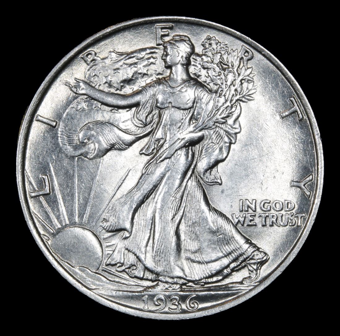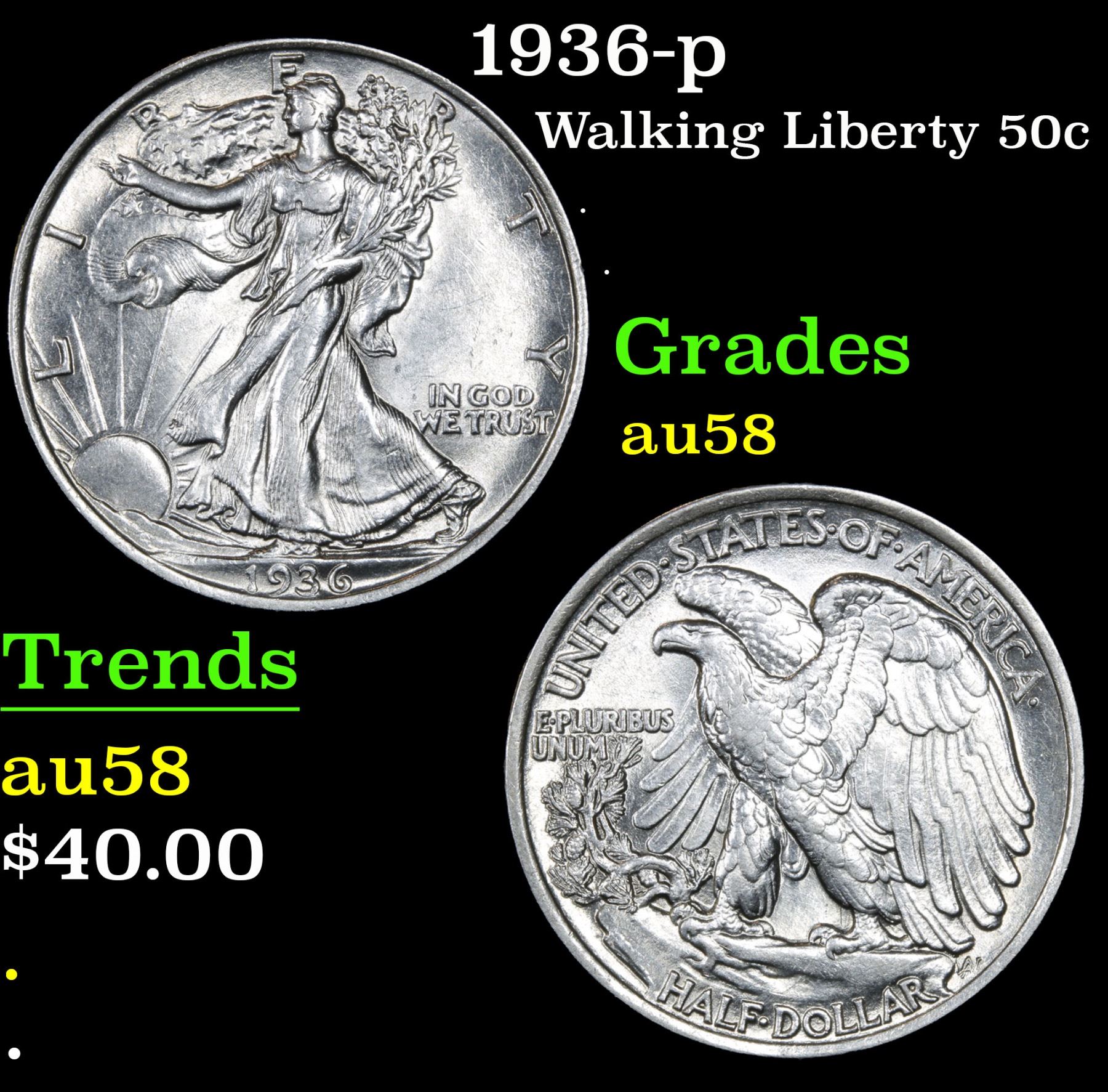 1936-p Walking Liberty Half Dollar 50c Grades Choice AU/BU Slider.