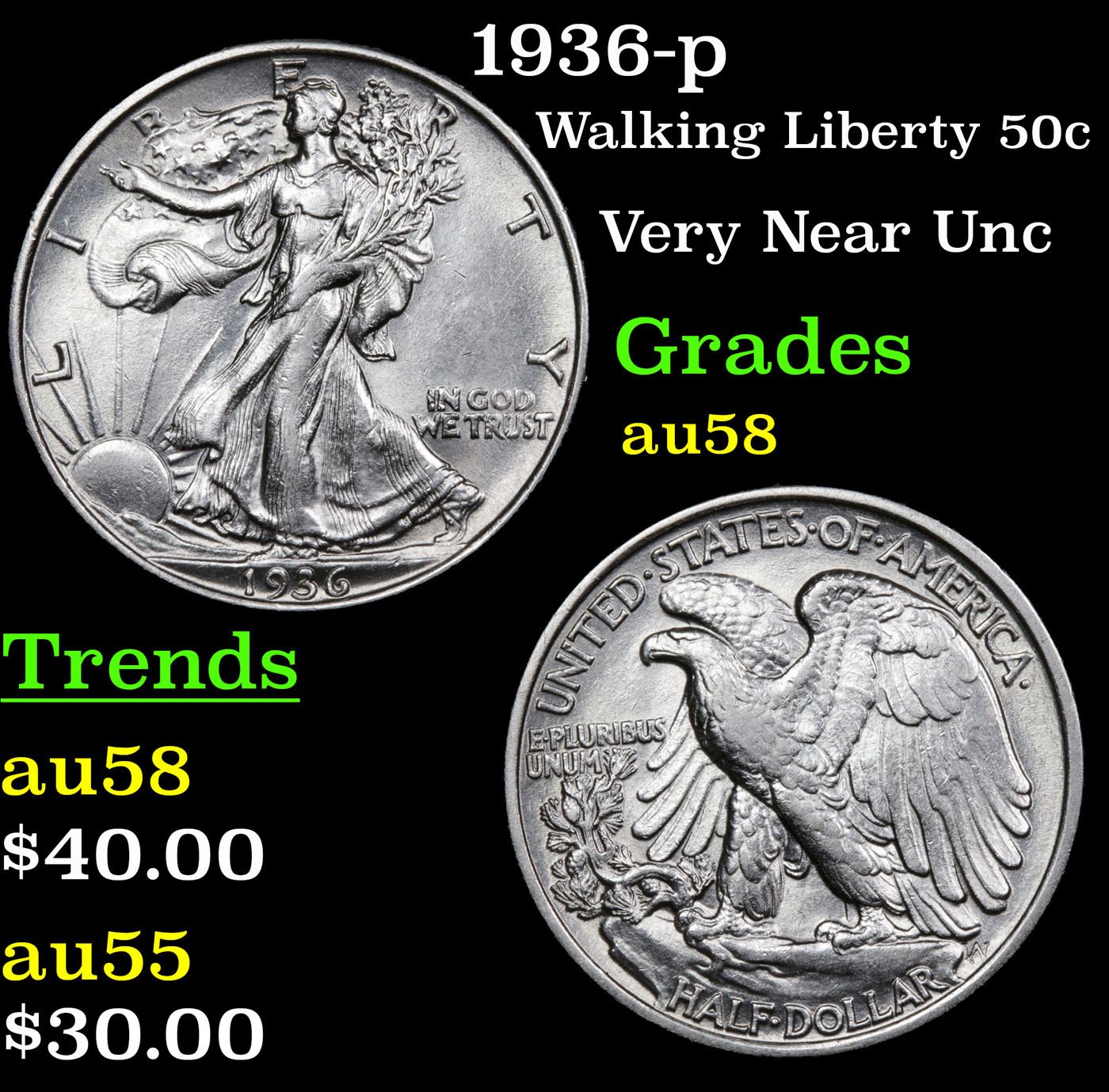 1936-p Walking Liberty Half Dollar 50c Grades Choice AU/BU Slider.