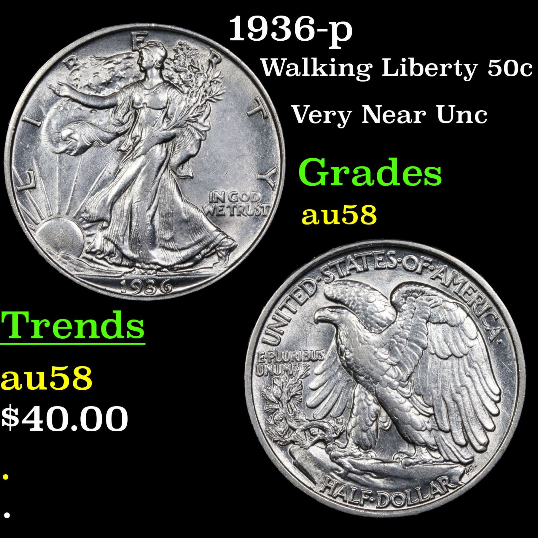 1936-p Walking Liberty Half Dollar 50c Grades Choice AU/BU Slider.