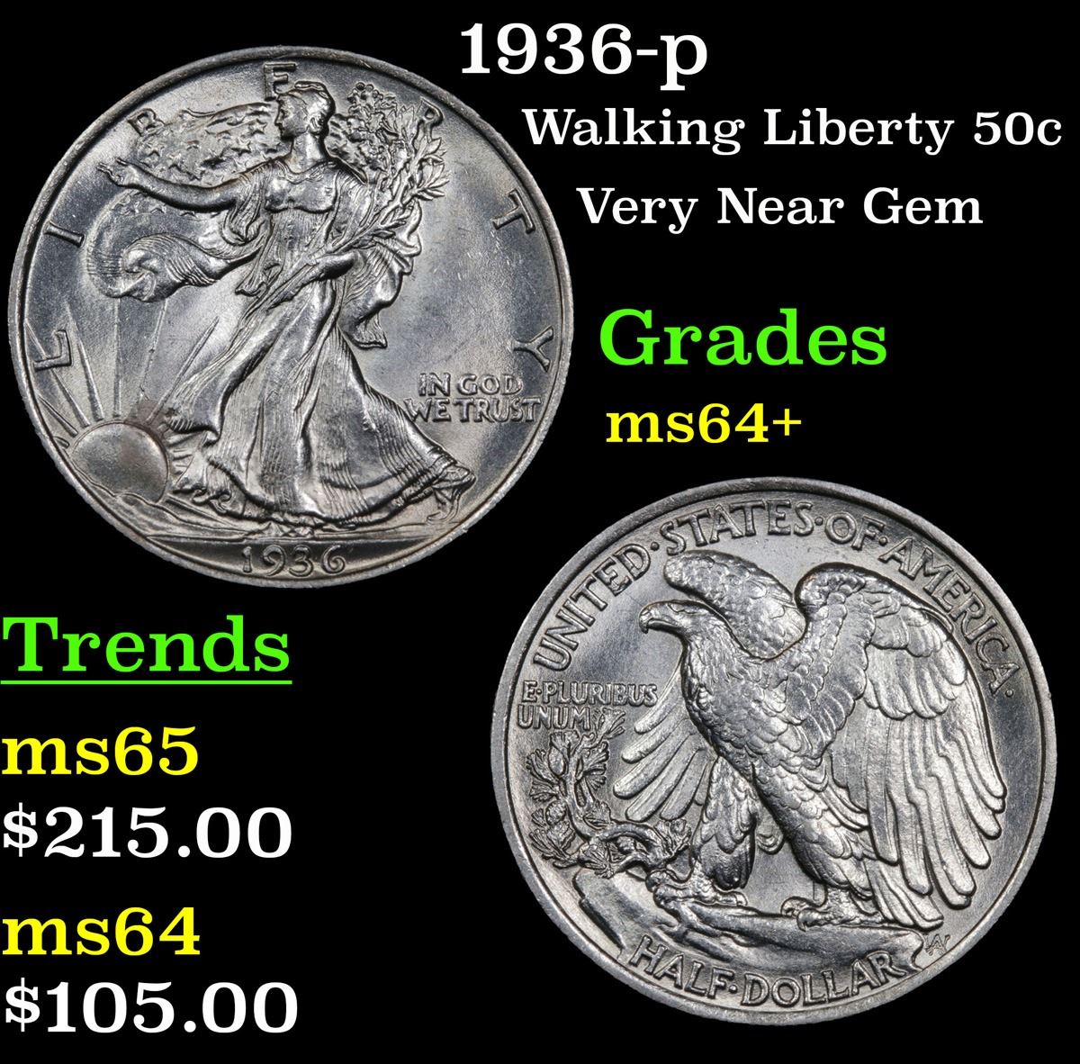 1936-p Walking Liberty Half Dollar 50c Grades Choice+ Unc.