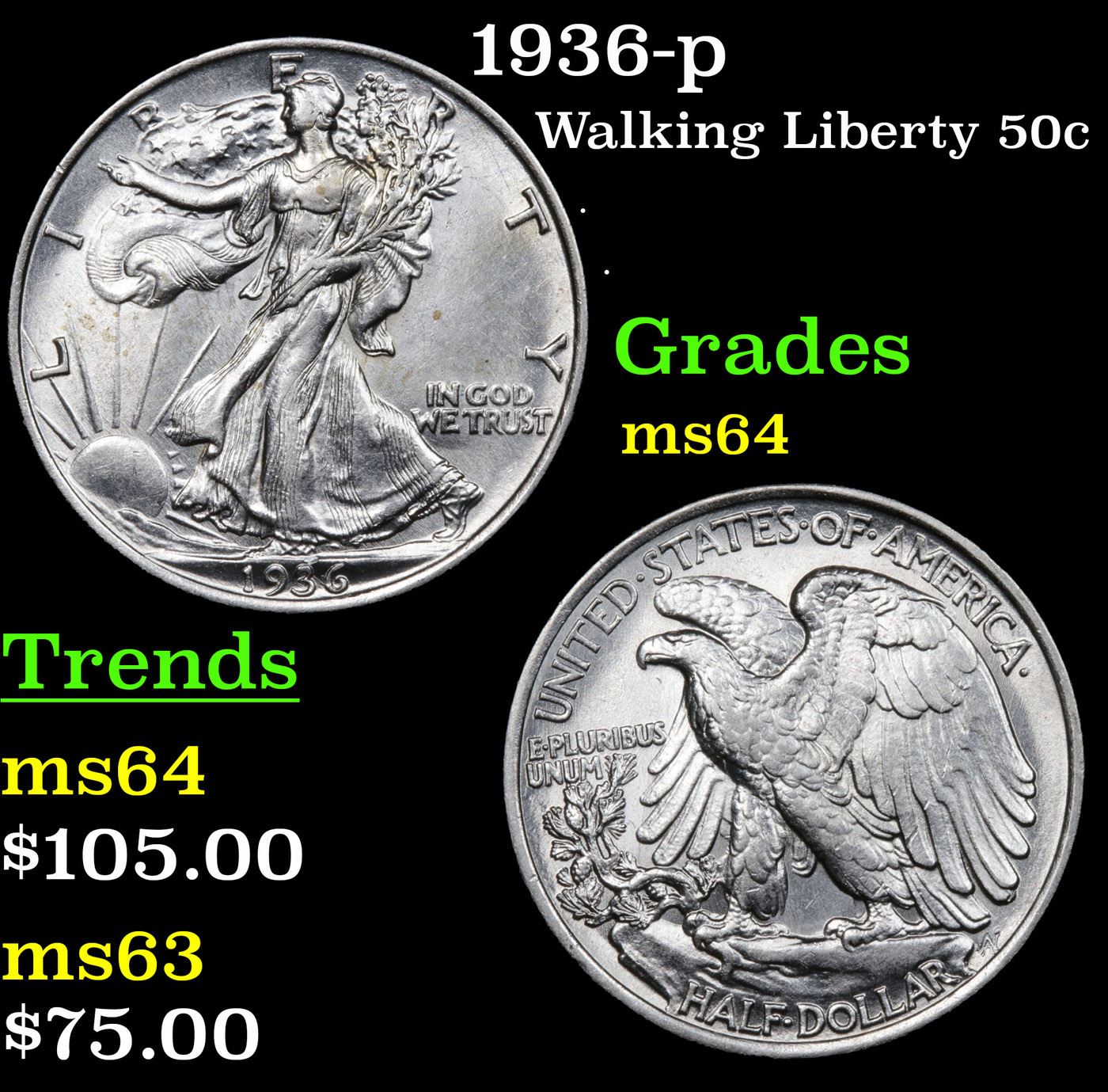 1936-p Walking Liberty Half Dollar 50c Grades Choice Unc.