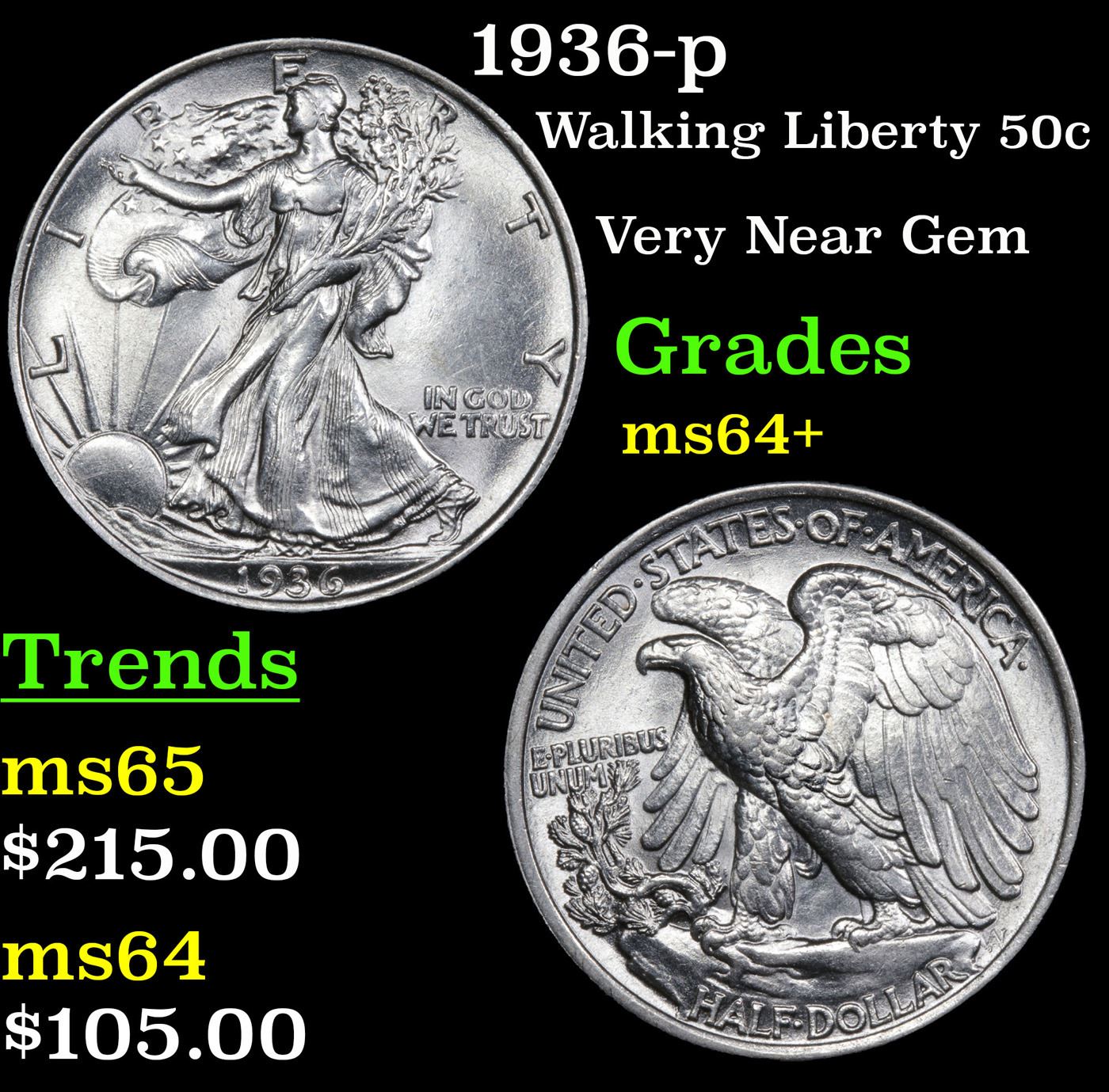 1936-p Walking Liberty Half Dollar 50c Grades Choice+ Unc.