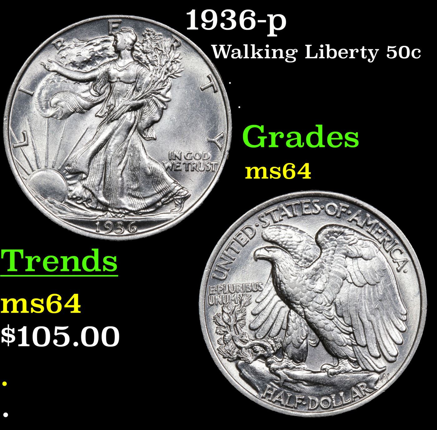 1936-p Walking Liberty Half Dollar 50c Grades Choice Unc.