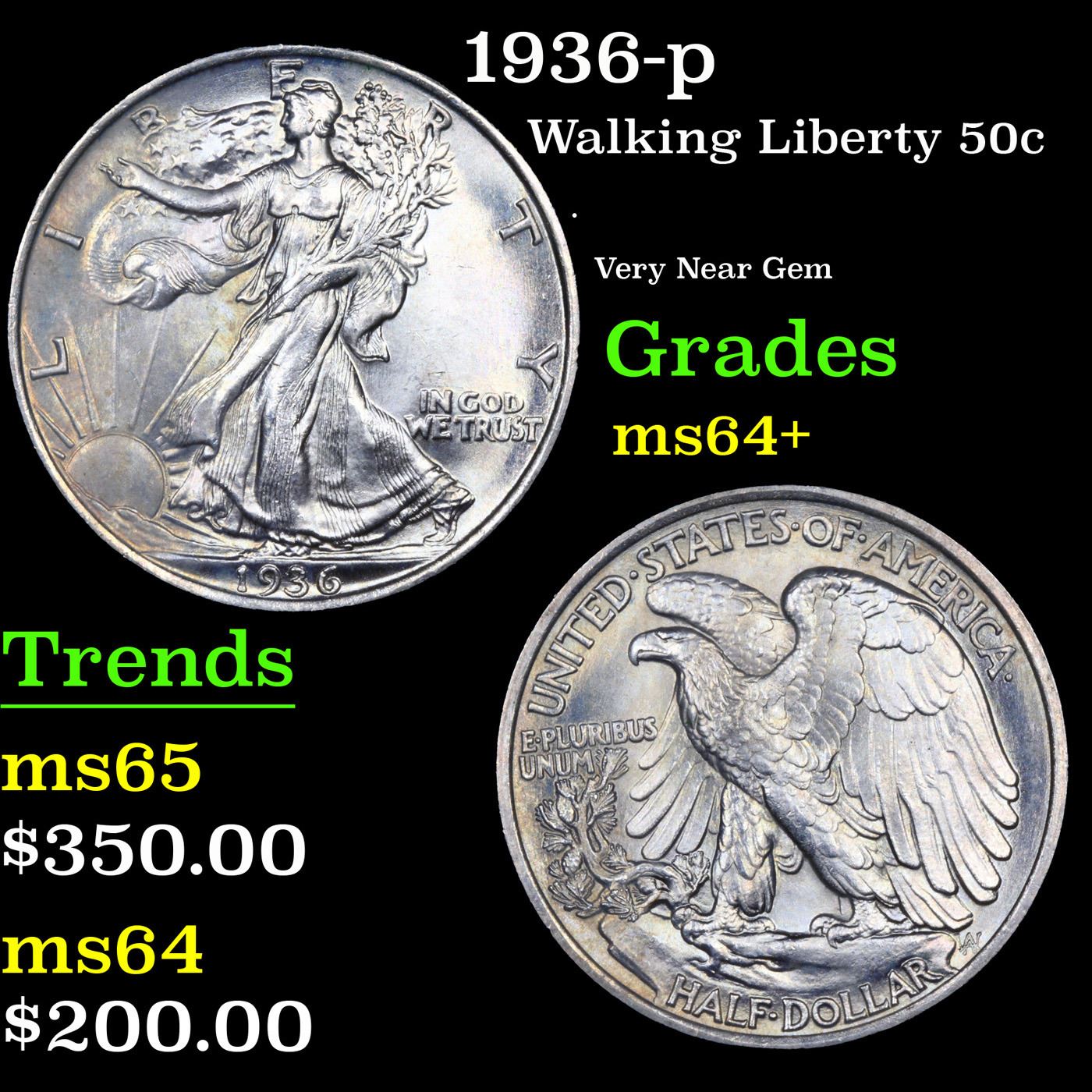 1936-p Walking Liberty Half Dollar 50c Grades Choice+ Unc.