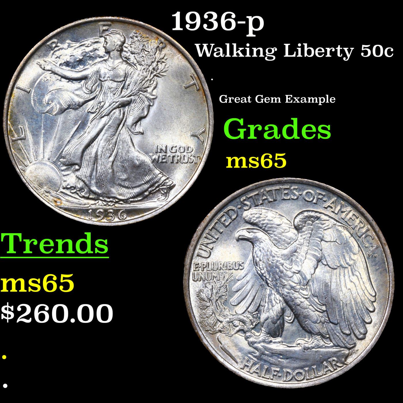 1936-p Walking Liberty Half Dollar 50c Grades GEM Unc.