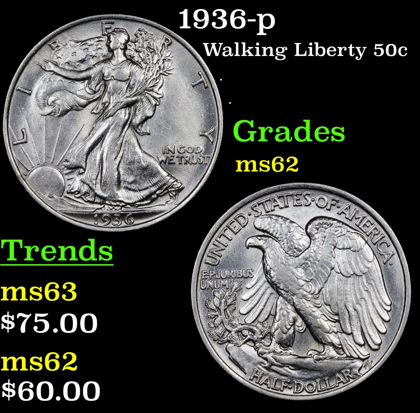 1936-p Walking Liberty Half Dollar 50c Grades Select Unc.