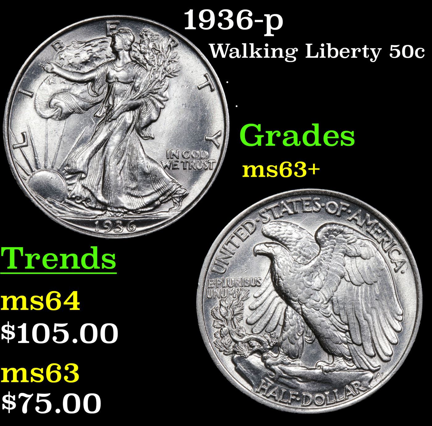 1936-p Walking Liberty Half Dollar 50c Grades Select+ Unc.