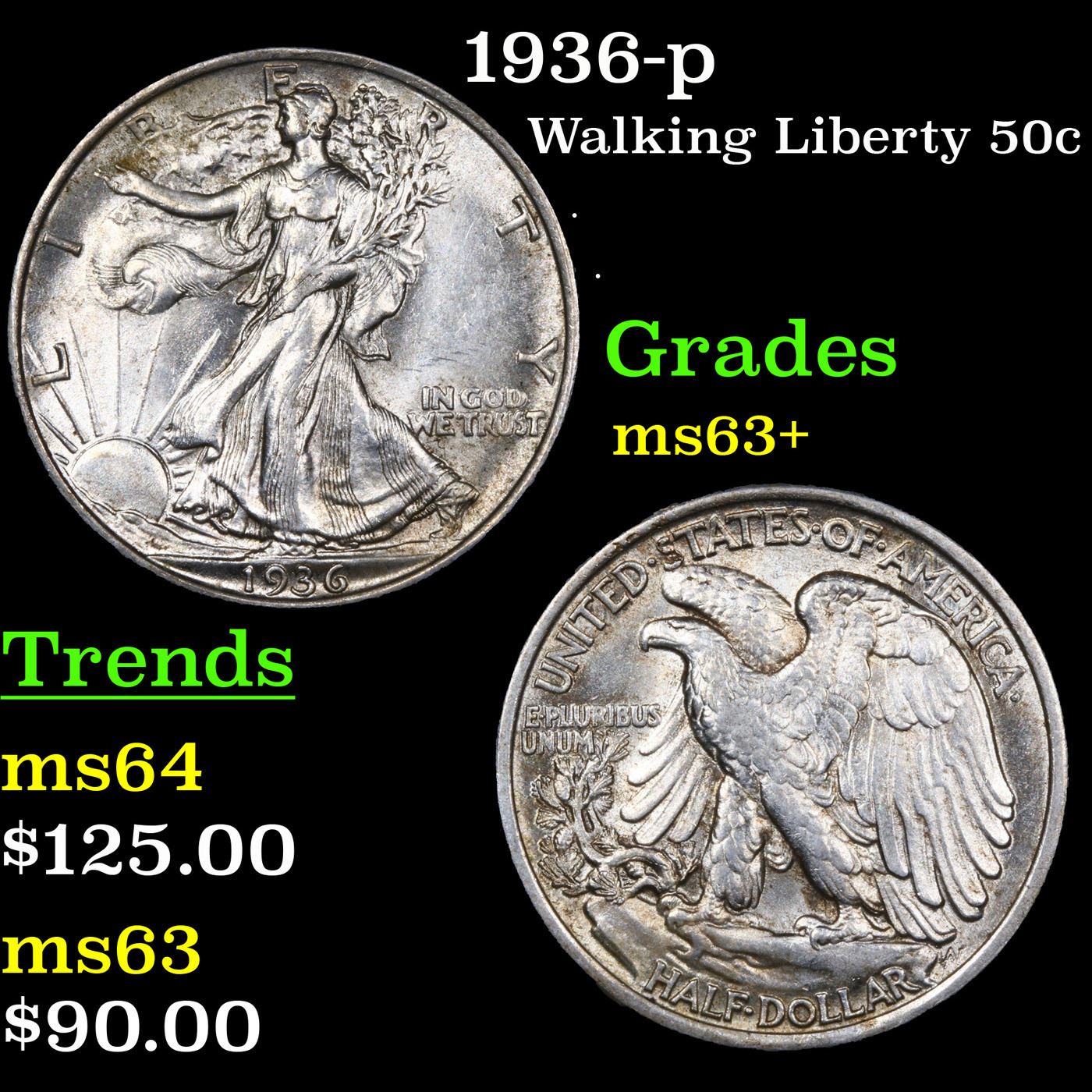 1936-p Walking Liberty Half Dollar 50c Grades Select+ Unc.