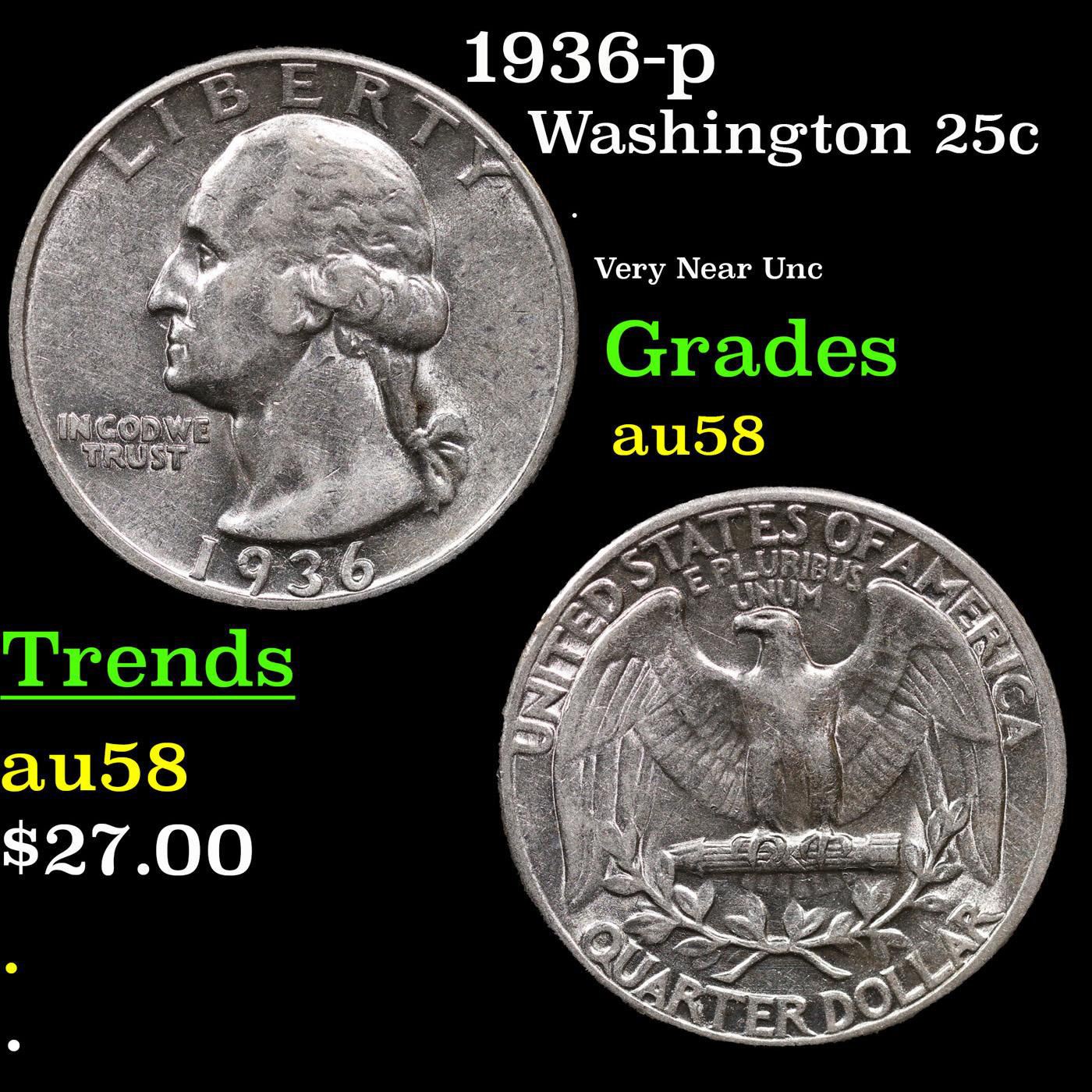 1936-p Washington Quarter 25c Grades Choice AU/BU Slider.