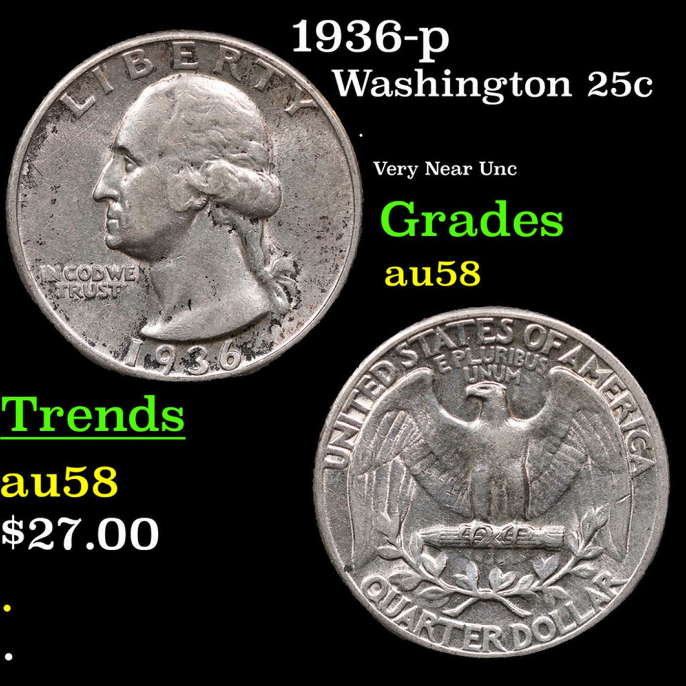 1936-p Washington Quarter 25c Grades Choice AU/BU Slider.