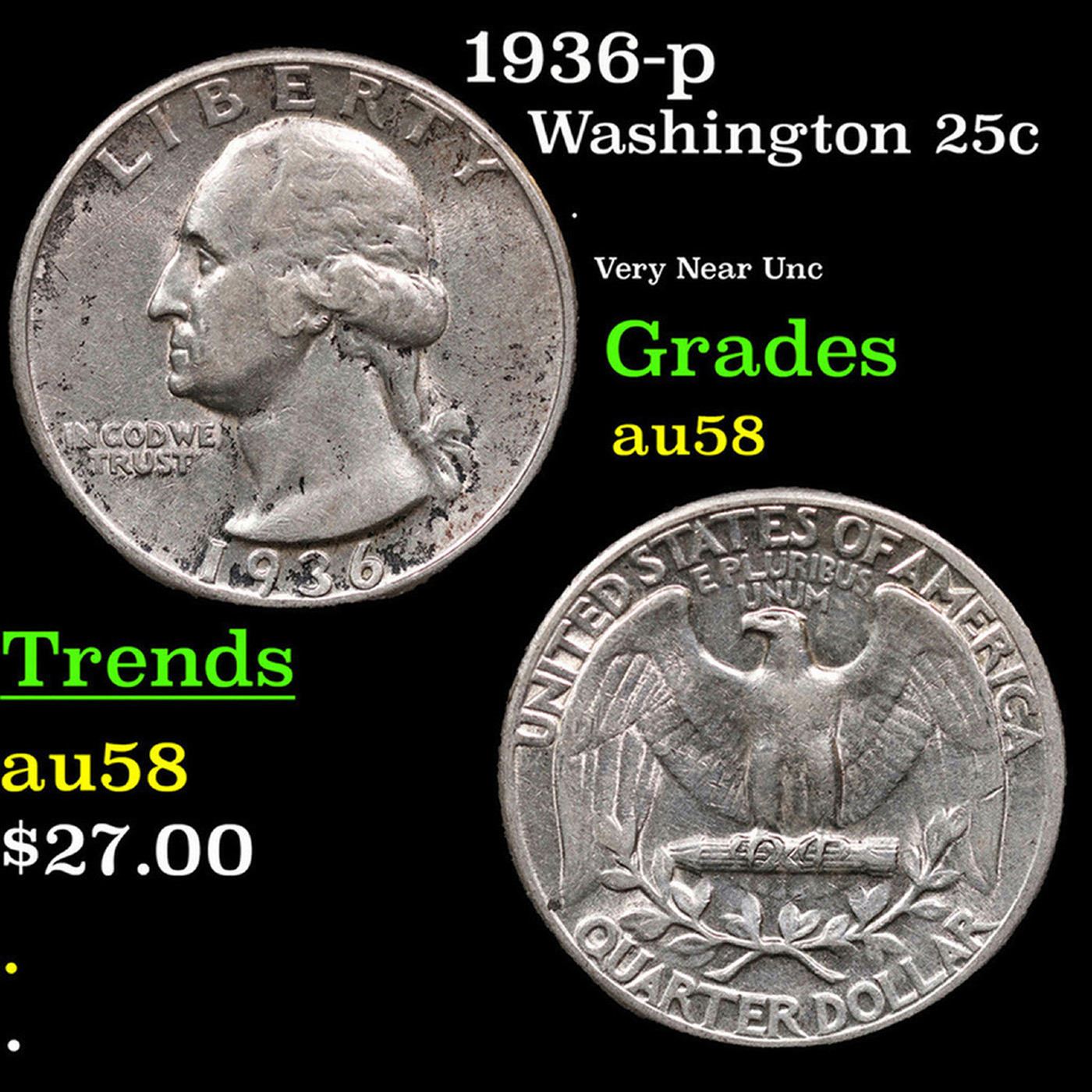 1936-p Washington Quarter 25c Grades Choice AU/BU Slider.
