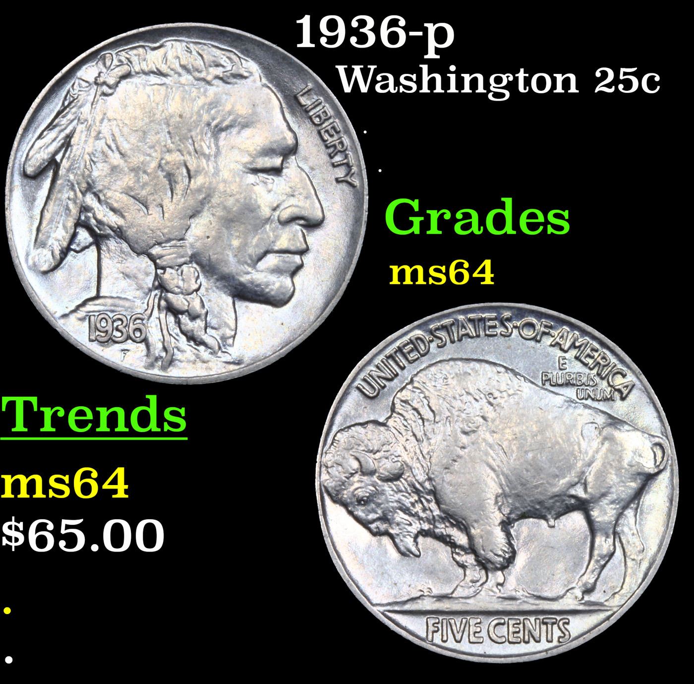 1936-p Washington Quarter 25c Grades Choice Unc.