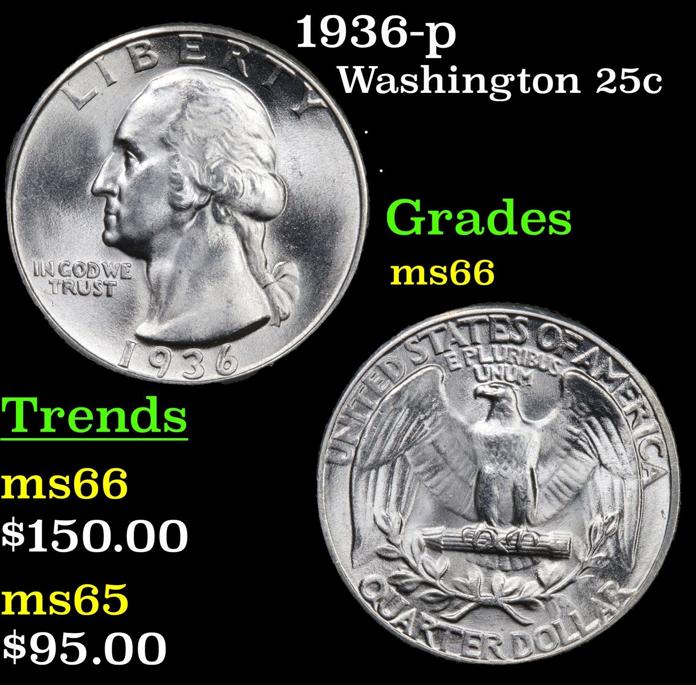 1936-p Washington Quarter 25c Grades GEM+ Unc.