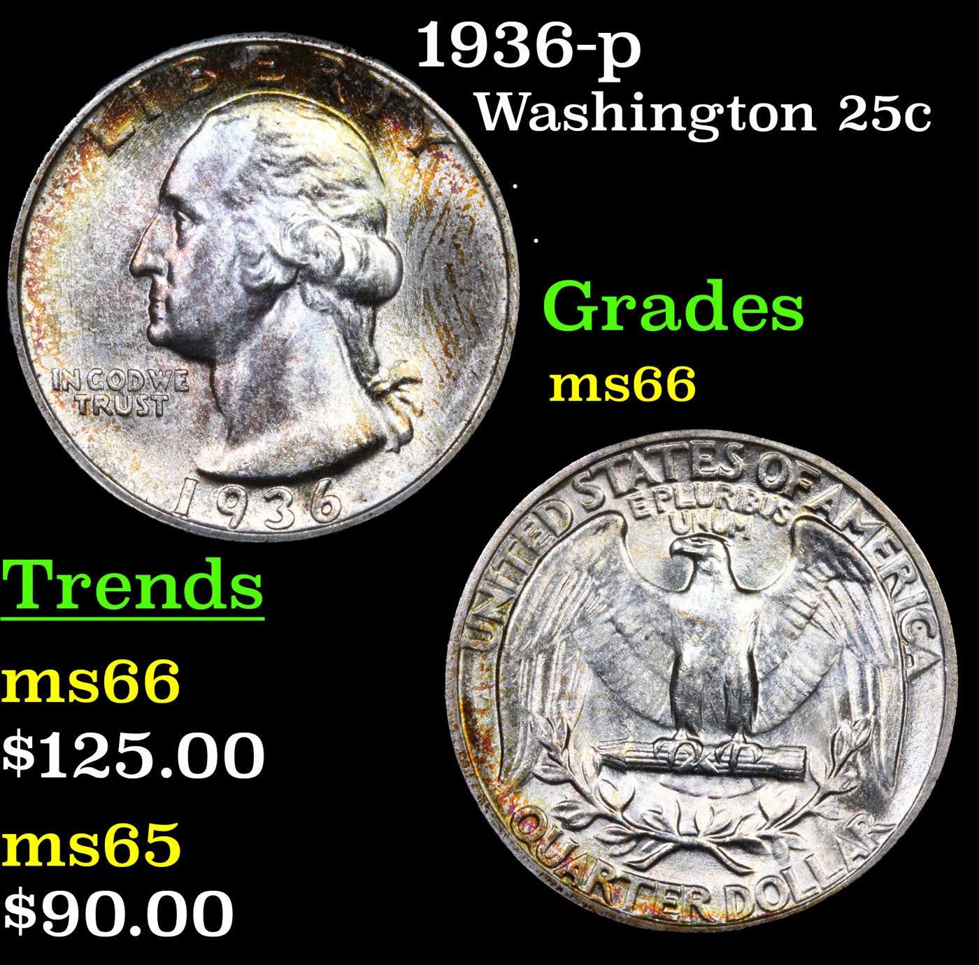 1936-p Washington Quarter 25c Grades GEM+ Unc.