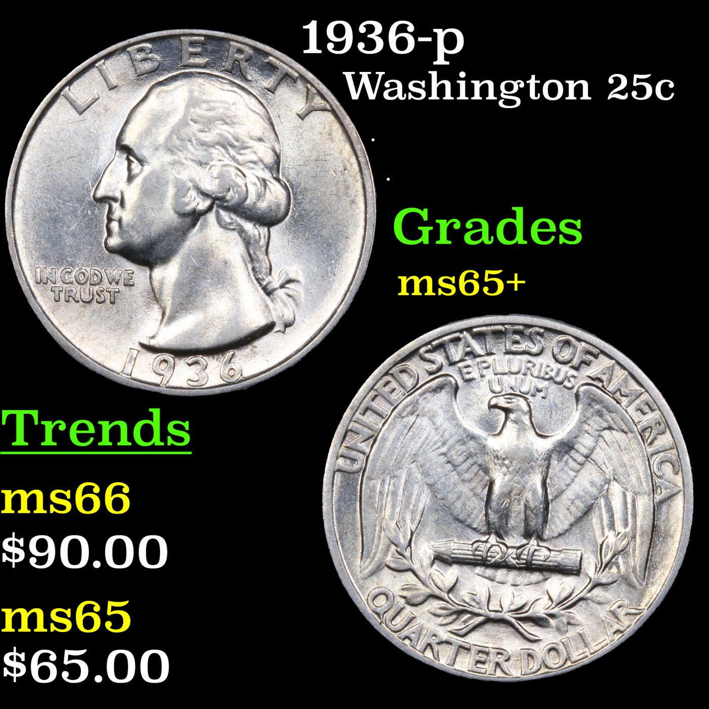 1936-p Washington Quarter 25c Grades GEM+ Unc.