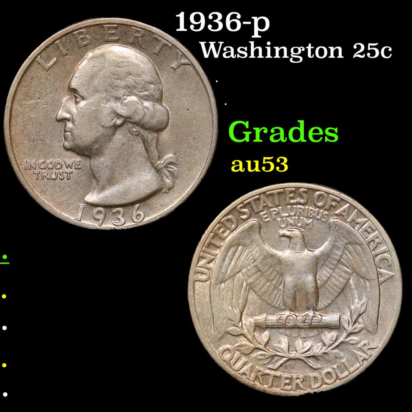 1936-p Washington Quarter 25c Grades Select AU.