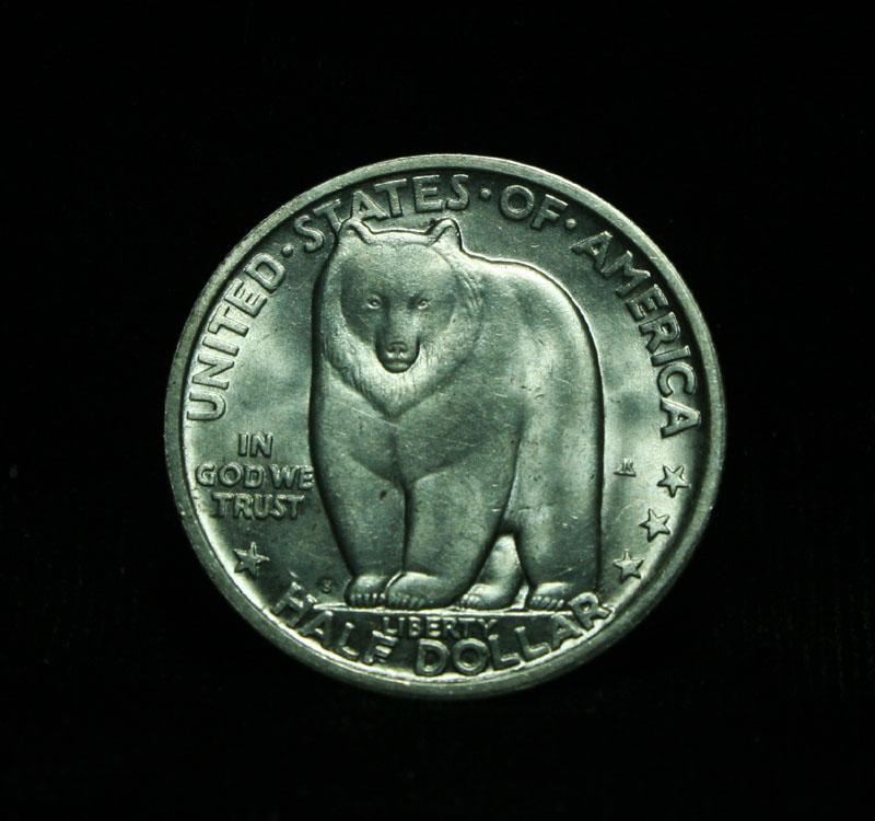 A nice example of a unique commemorative. The 1936-s bay Bridge Commemorative is The only coin dedicated solely to recognition of an engineering triumph in American History. When examining a Bay Bridge Commemorative check for wear on the bear’s left shoulder and the hills above the bridge. Coin World's Coin Values lists ms64 at $205 and The Wholesale Greysheet lists ms64 at $145. Estimated Value $175