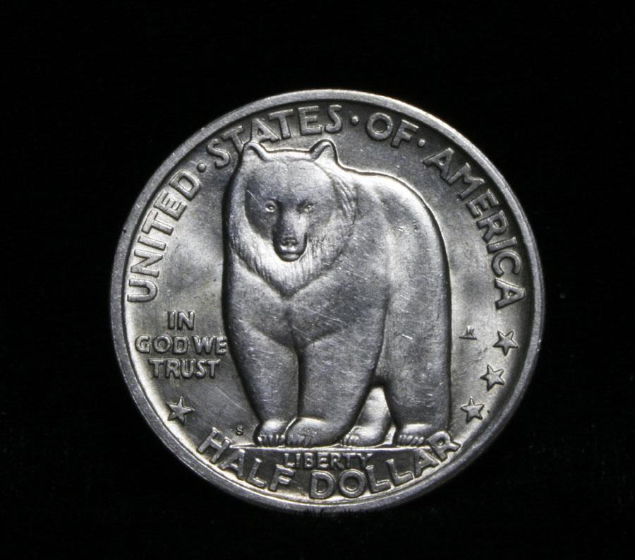 A nice example of a unique commemorative. The 1936-s bay Bridge Commemorative is The only coin dedicated solely to recognition of an engineering triumph in American History. When examining a Bay Bridge Commemorative check for wear on the bear’s left shoulder and the hills above the bridge. Coin World's Coin Values lists ms64 at $205 and The Wholesale Greysheet lists ms64 at $145. Estimated Value $175