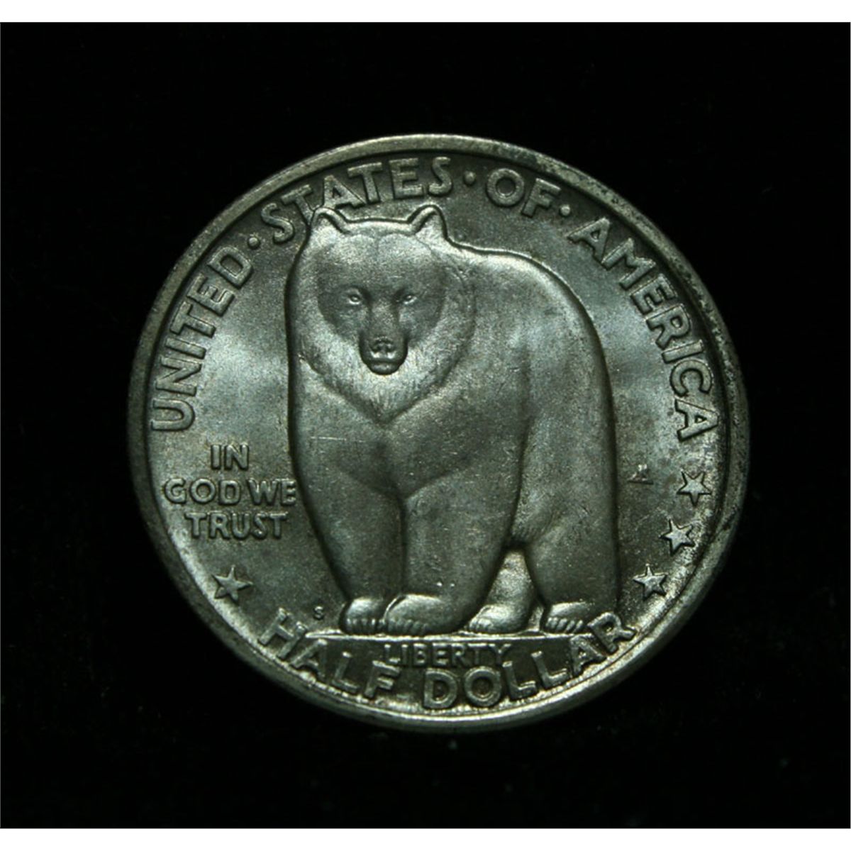 A beautiful lightly pastel toned example of a unique commemorative. The bear is virtually mark free, a very tough thing to find. The 1936-s bay Bridge Commemorative is The only coin dedicated solely to recognition of an engineering triumph in American History. When examining a Bay Bridge Commemorative check for wear on the bear’s left shoulder and the hills above the bridge. Coin World's Coin Values lists ms65 at $350 and The Wholesale Greysheet lists ms65 at $290. Estimated Value $300