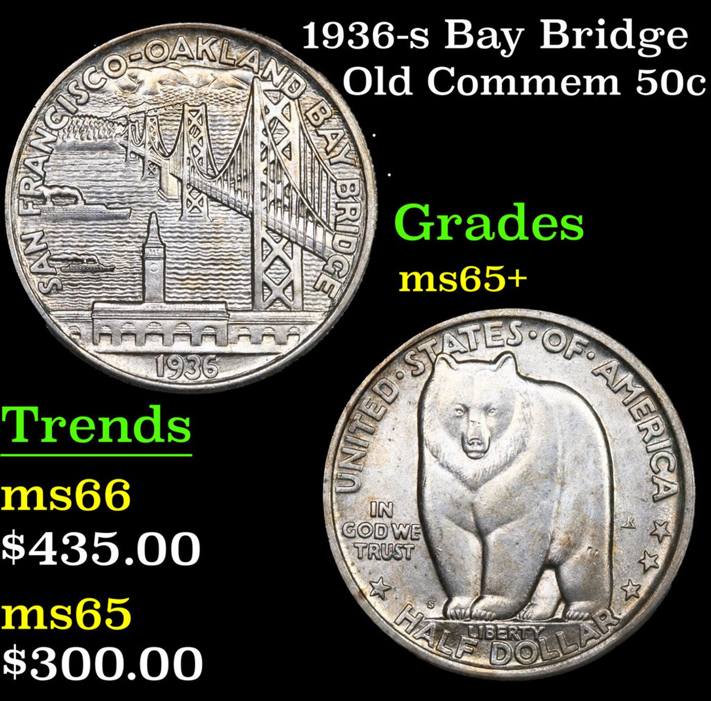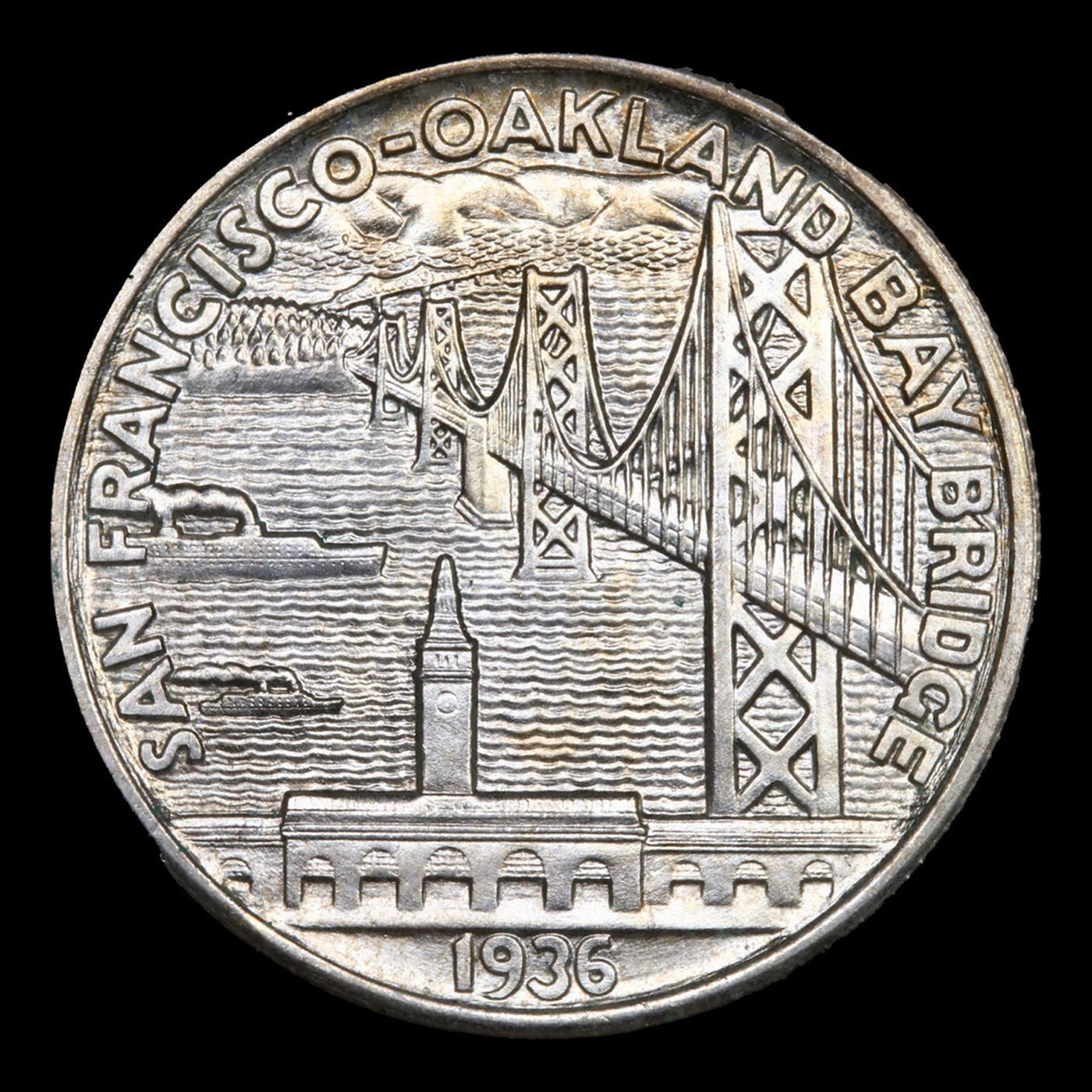 1936-s Bay Bridge Old Commem Half Dollar 50c Grades GEM+ Unc. The opening of the San Francisco-Oakland Bay Bridge was commemorated with the issuance of a silver half dollar. Commonly referred to as the Bay Bridge Half Dollar, the issue proved to be one of the most popular from the plethora of commemorative coins released during the same year.