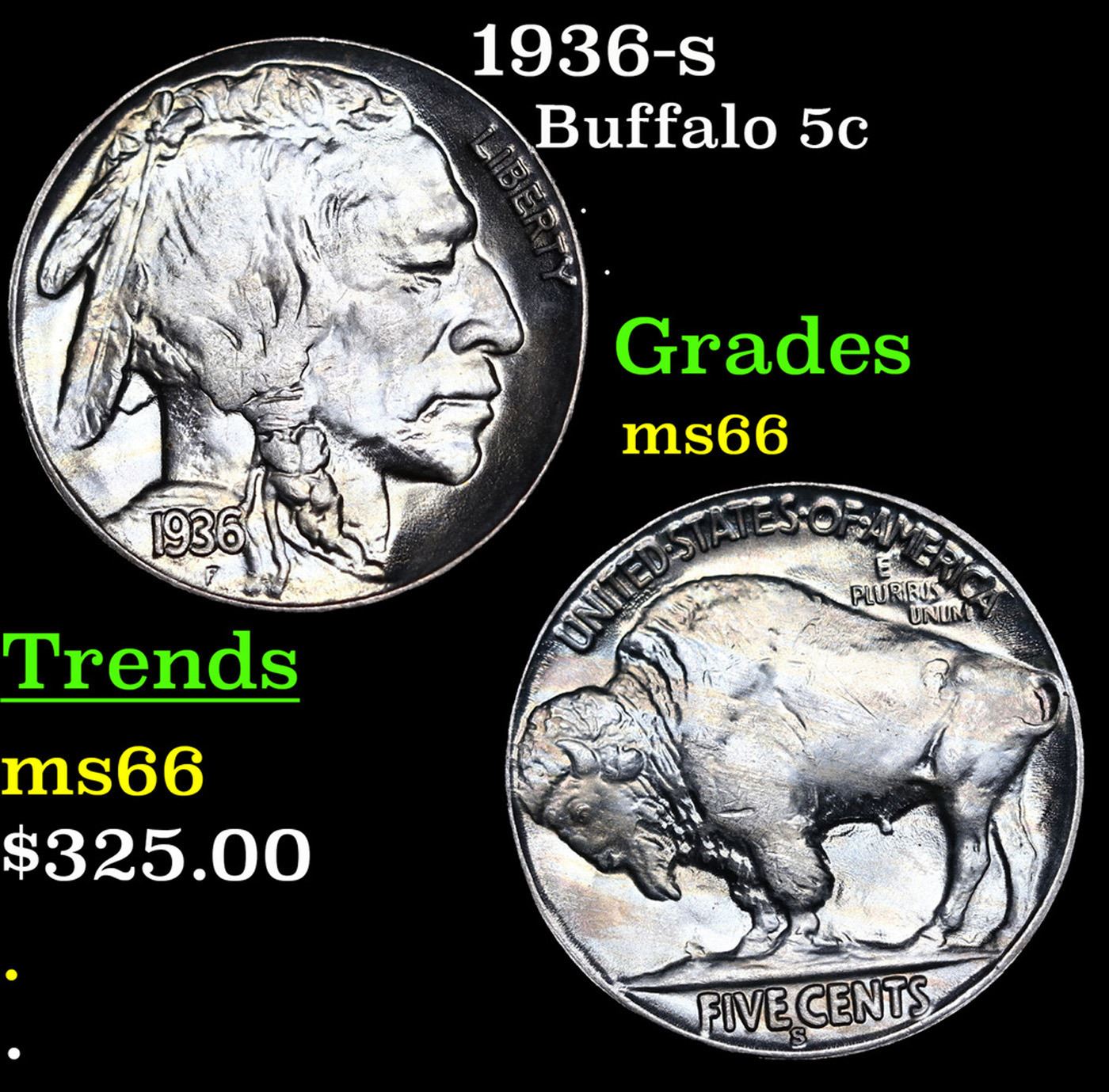 1936-s Buffalo Nickel 5c Grades GEM+ Unc.