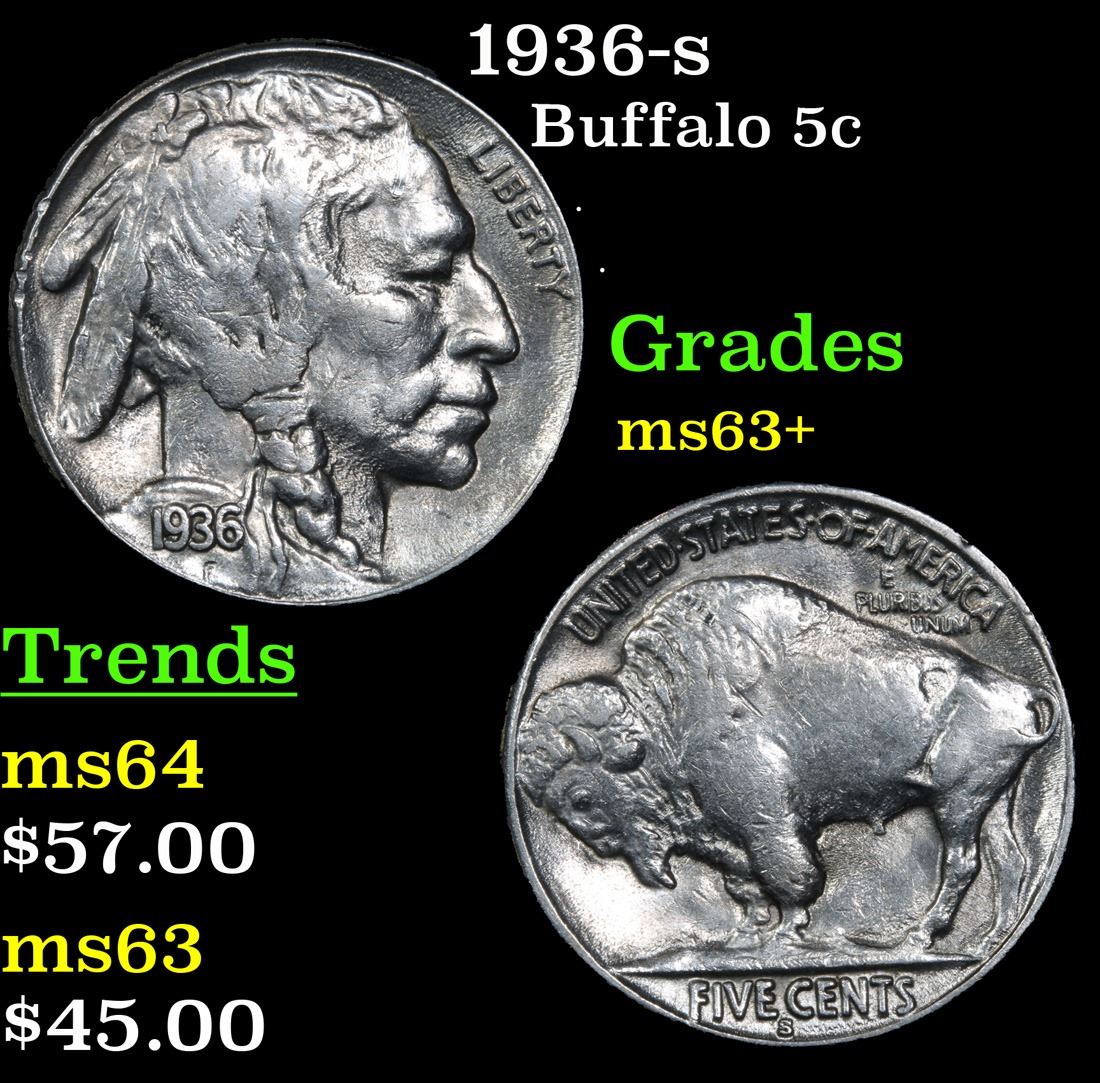 1936-s . . Buffalo Nickel 5c Grades Select+ Unc.