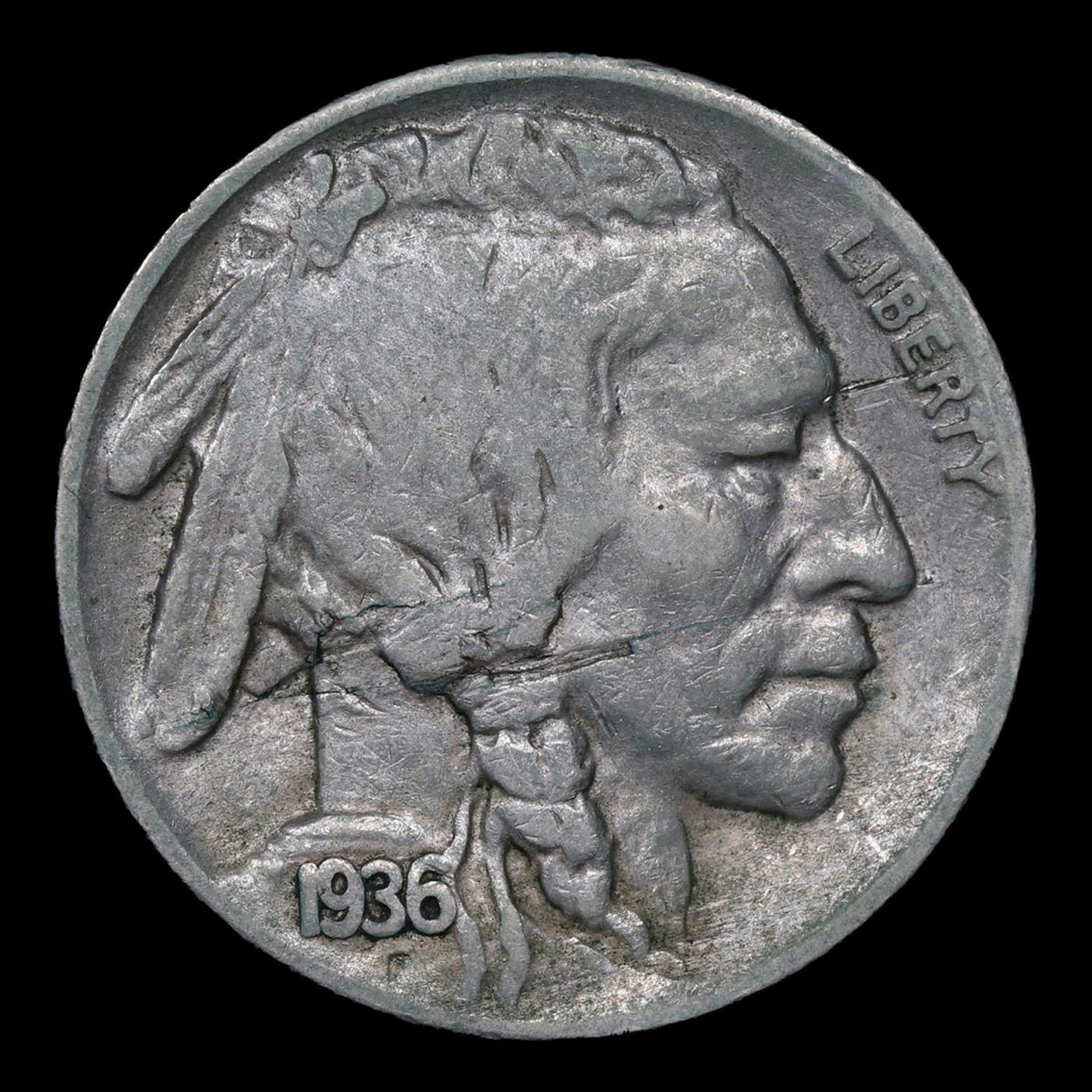 1936-s Mint Error Buffalo Nickel 5c Grades Select AU.