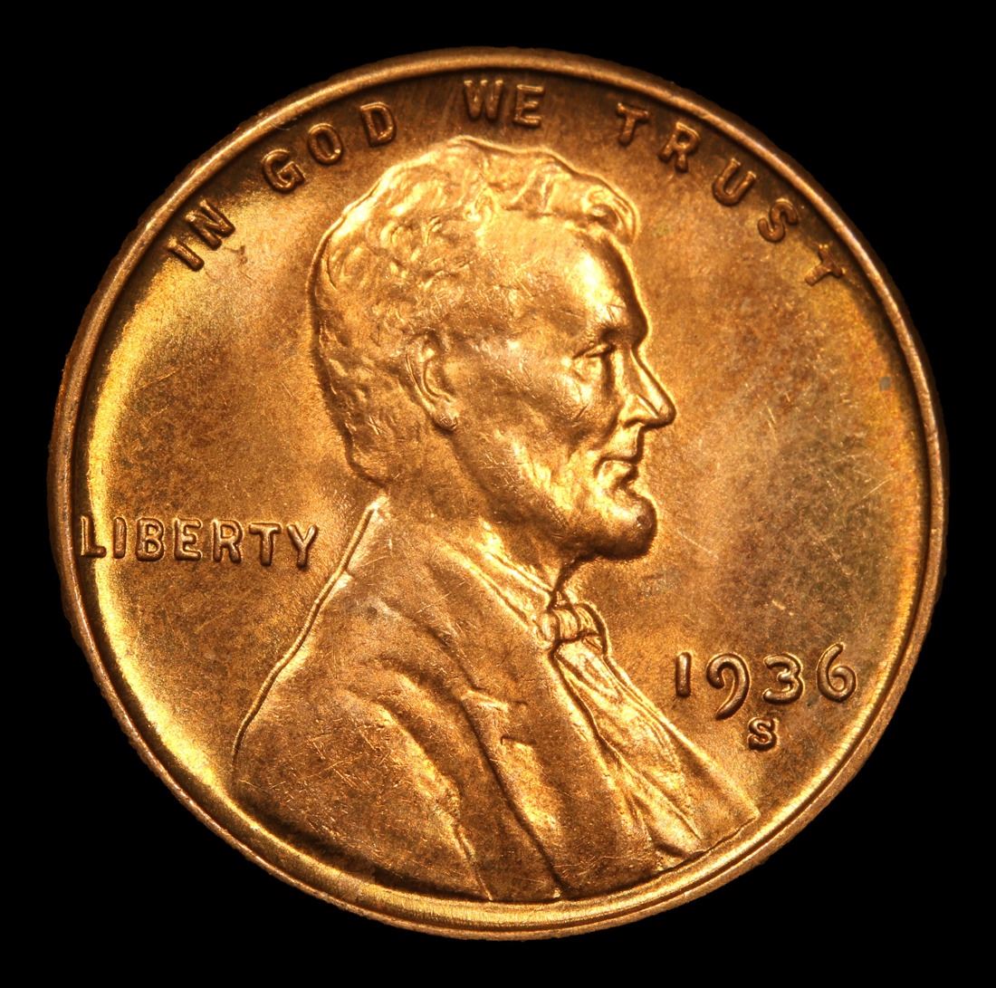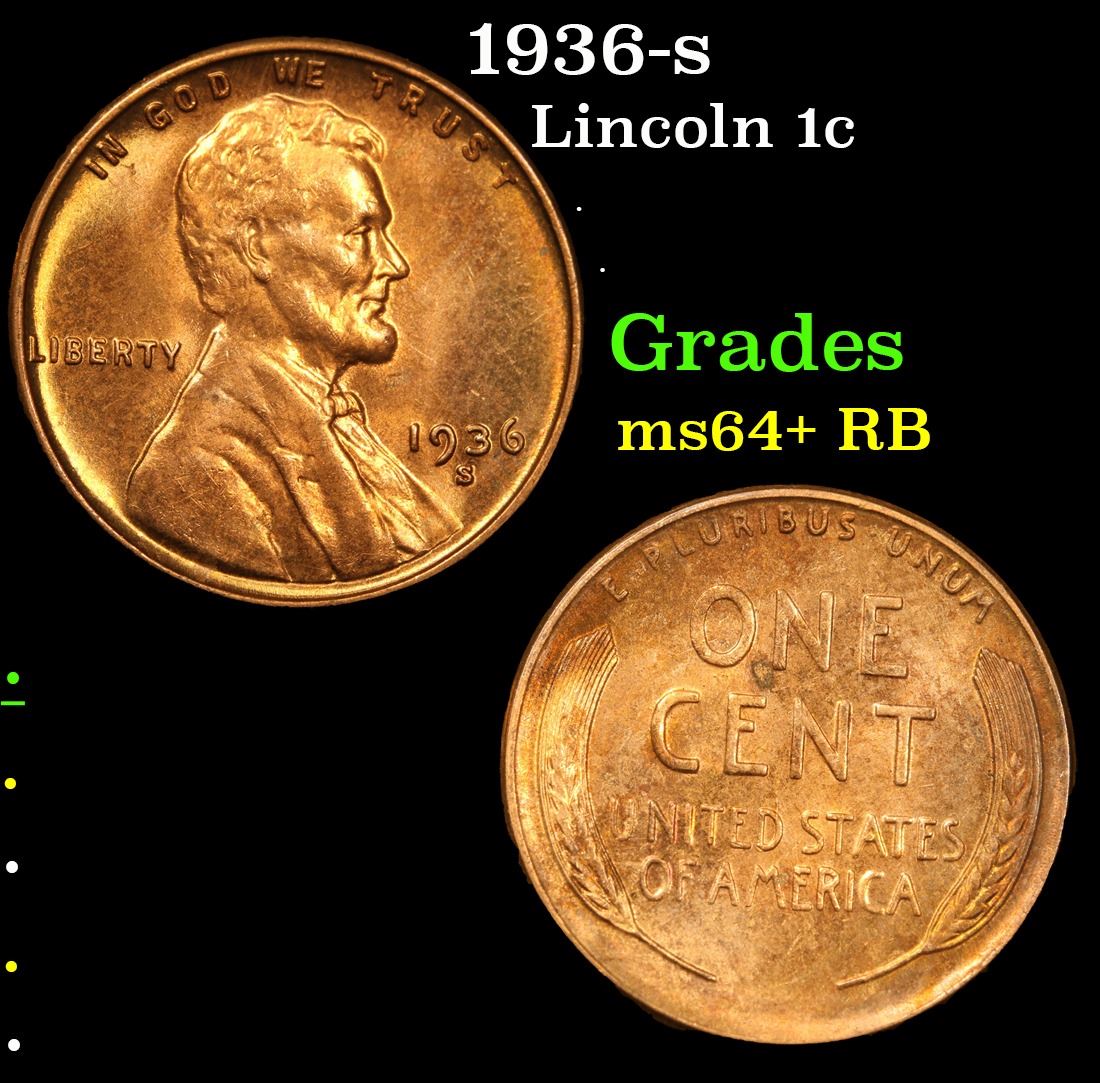 1936-s . . Lincoln Cent 1c Grades Choice+ Unc RB.