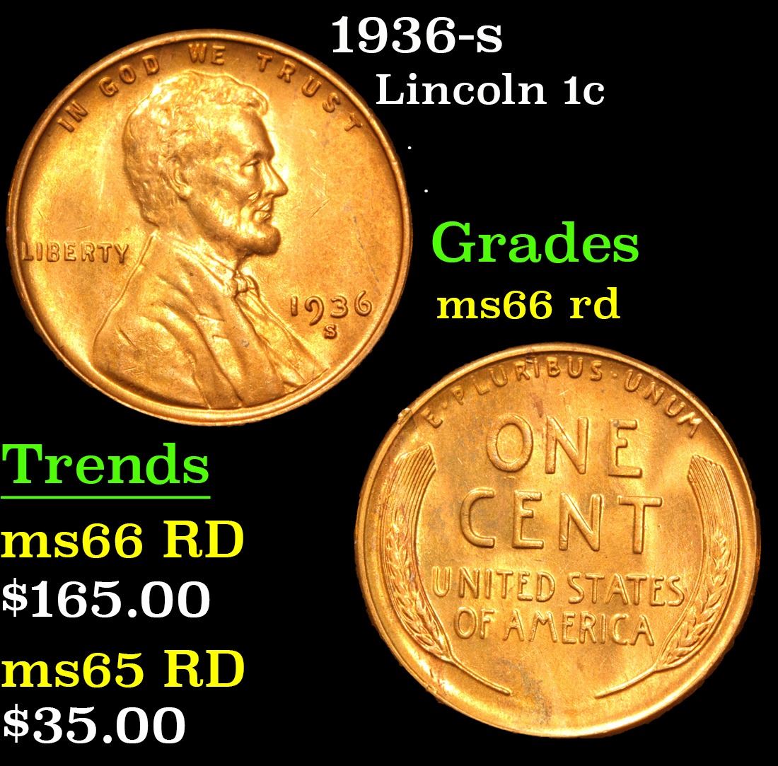 1936-s . . Lincoln Cent 1c Grades GEM+ Unc RD.