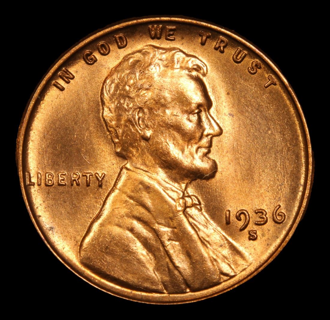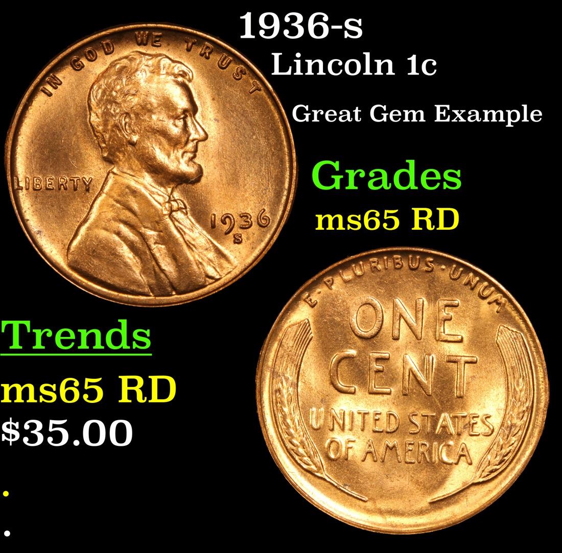 1936-s . Great Gem Example Lincoln Cent 1c Grades GEM Unc RD.